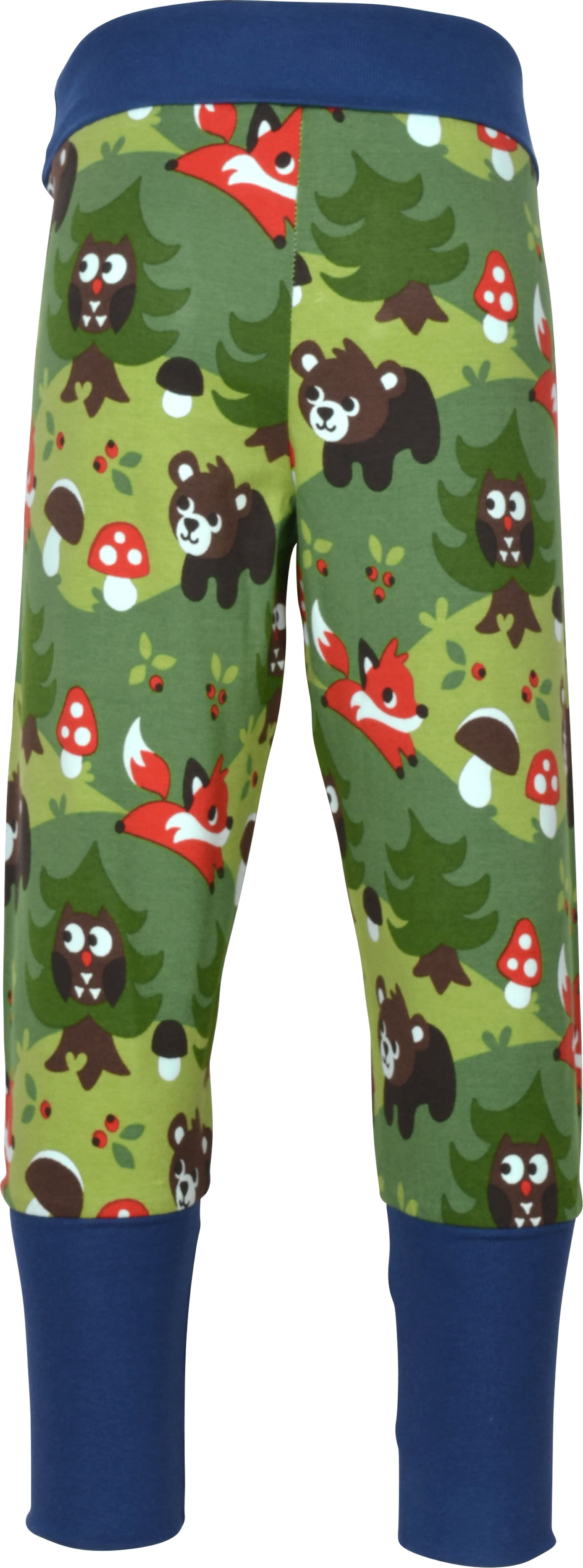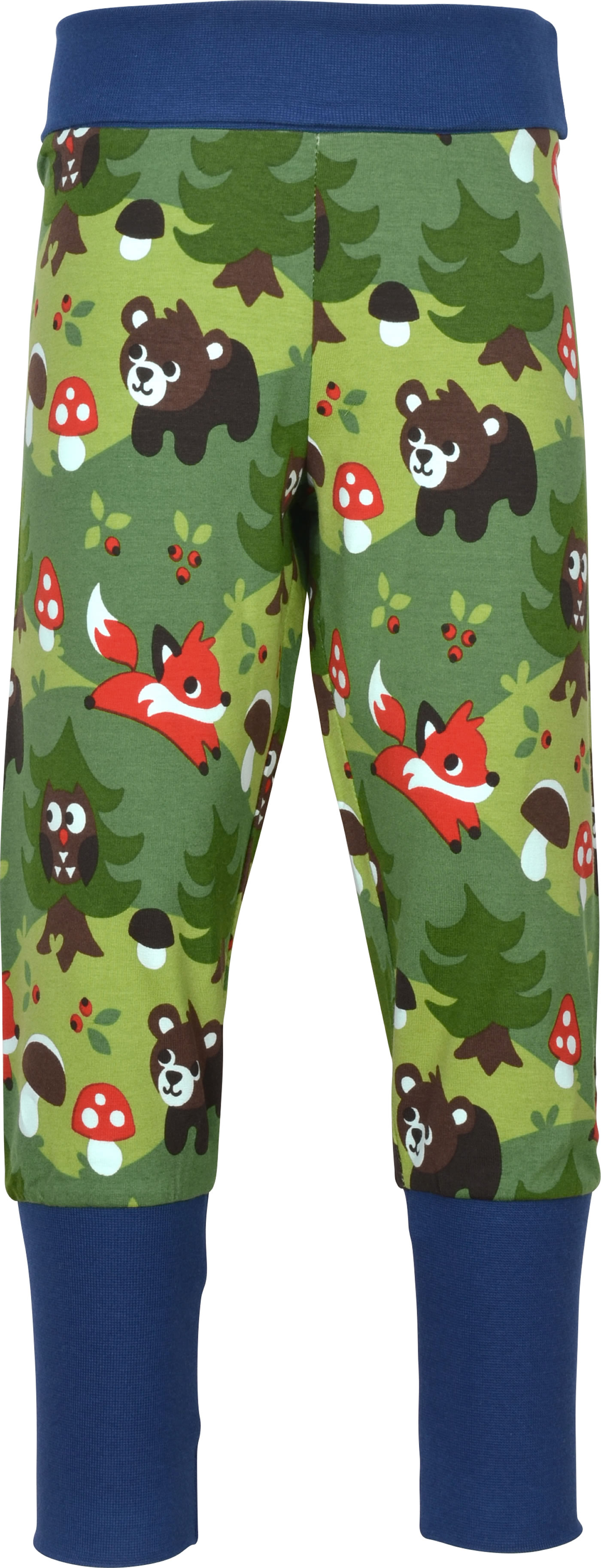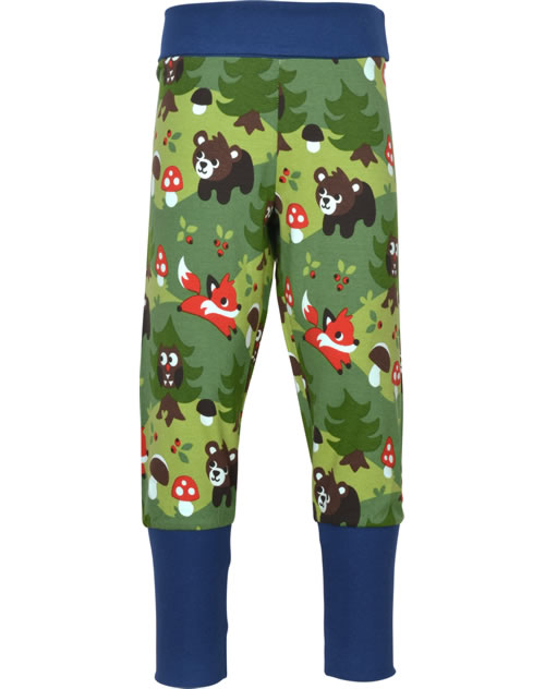 Gemütliche Bund-Hose in grün mit Wald-Motiven von MAXOMORRA. Das beliebte Kleidungsstück hat einen breiten, weichen Gummibund, der das An- und Ausziehen zum Kinderspiel macht. Das weiche Jersey-Material sorgt für einen hohen Tragekomfort.