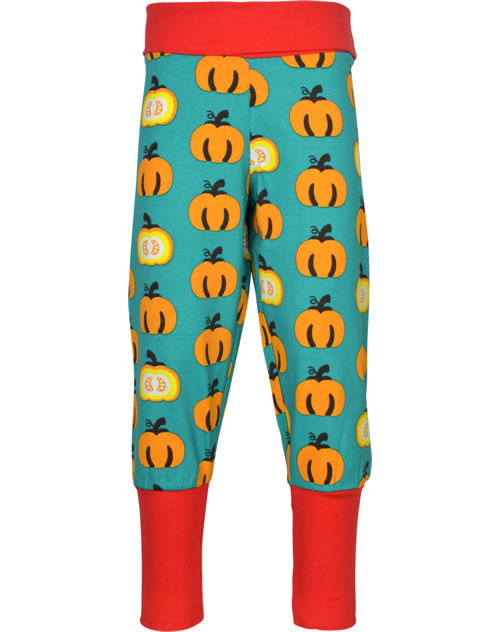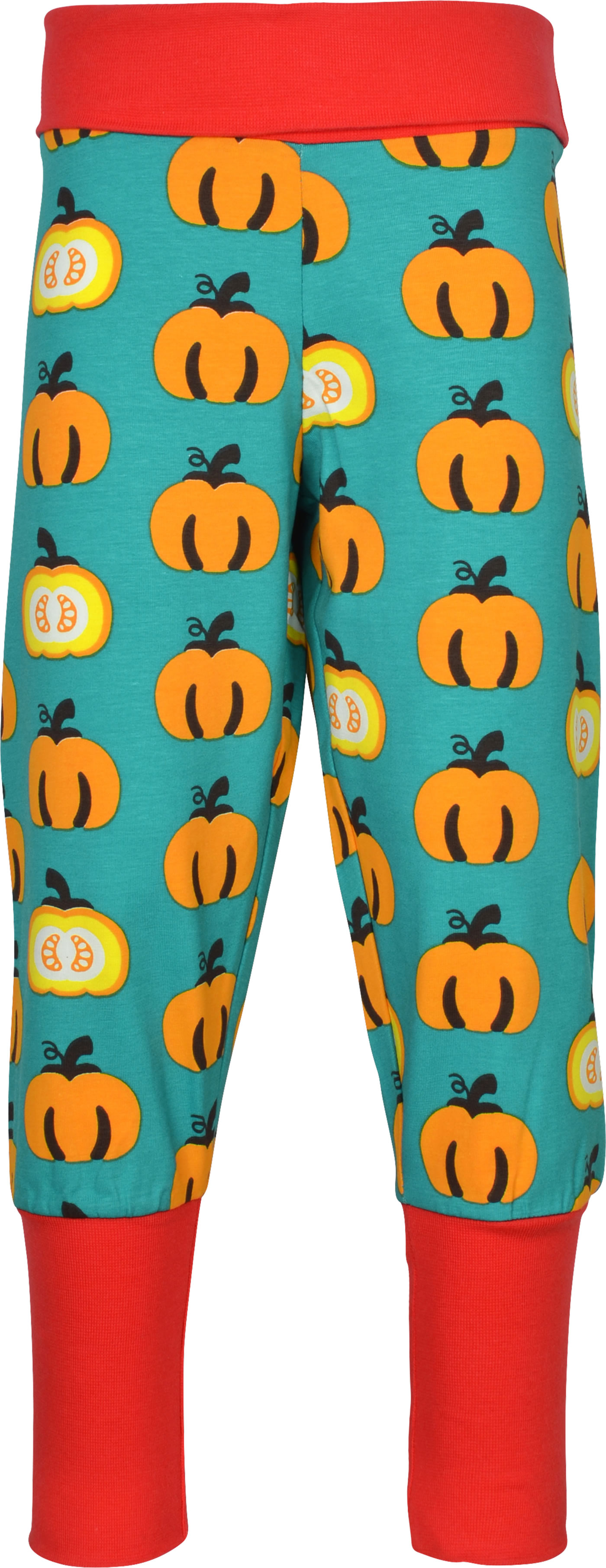 Gemütliche Bund-Hose in petrol mit Kürbis-Motiven von MAXOMORRA. Das beliebte Kleidungsstück hat einen breiten, weichen Gummibund, der das An- und Ausziehen zum Kinderspiel macht. Das weiche Jersey-Material sorgt für einen hohen Tragekomfort.
