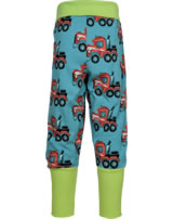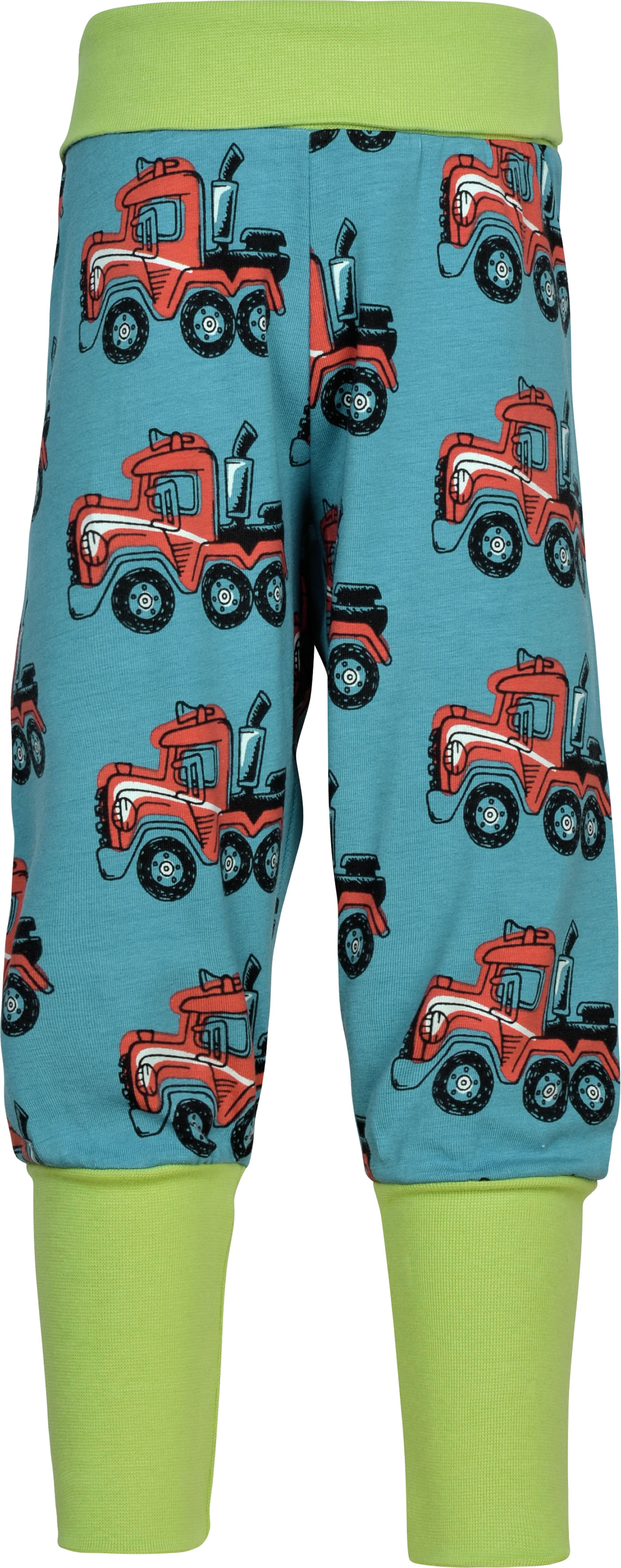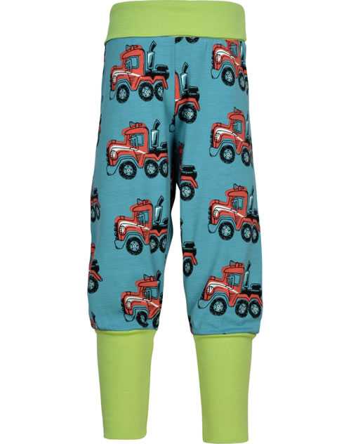 Gemütliche Bund-Hose in blau mit buntem LKW-Motiv von MAXOMORRA. Das beliebte Kleidungsstück hat einen breiten, weichen Gummibund, der das An- und Ausziehen zum Kinderspiel macht. Das weiche Jersey-Material sorgt für einen hohen Tragekomfort.