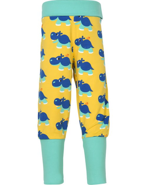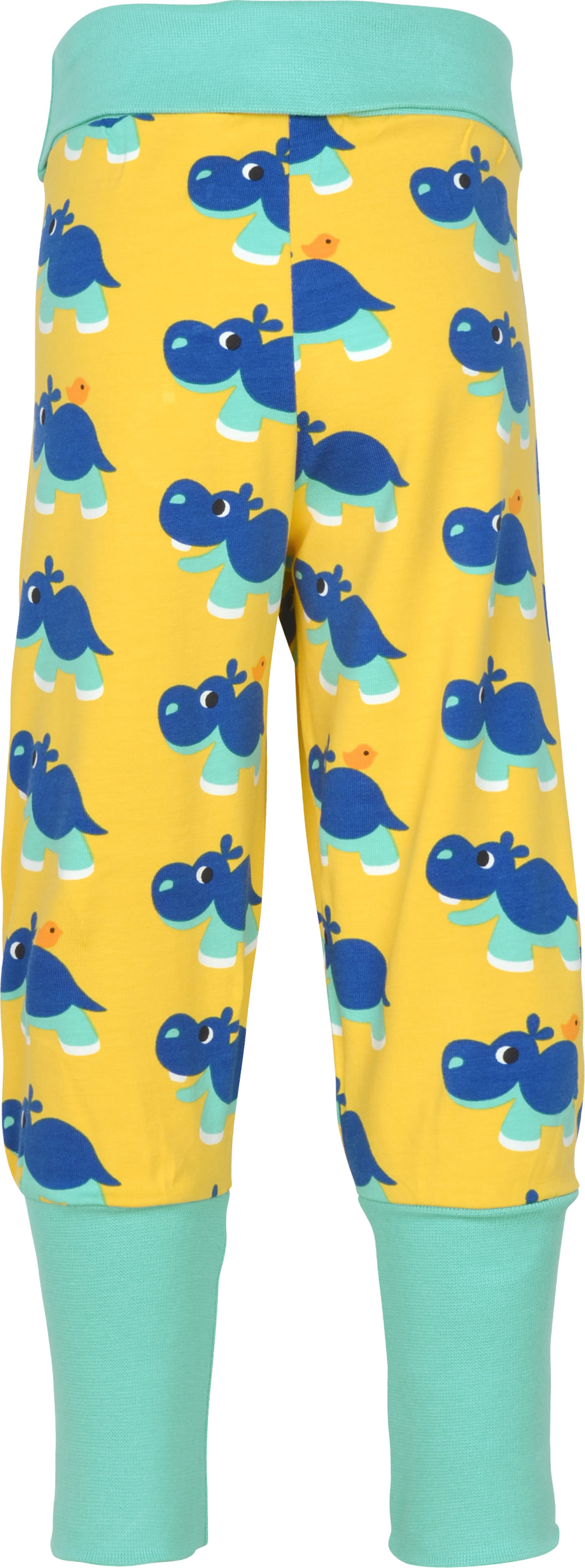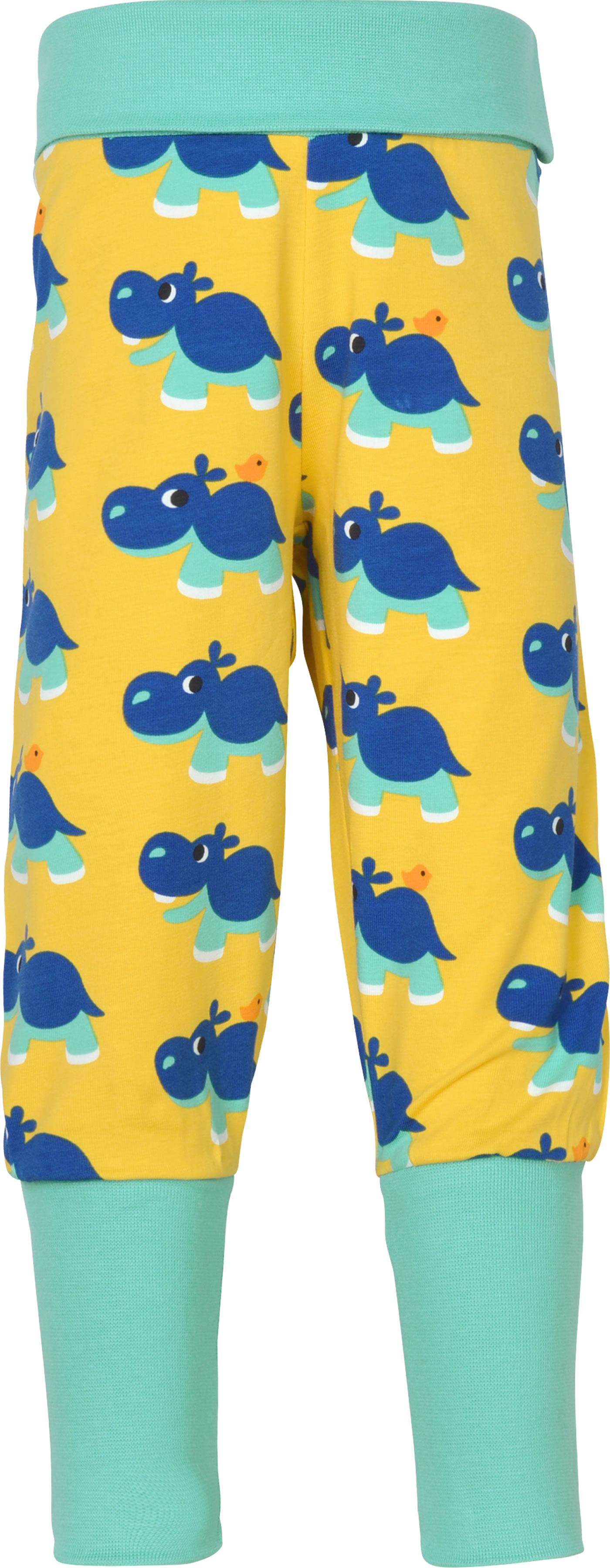 Gemütliche Bund-Hose in gelb mit Hippo-Motiven von MAXOMORRA. Das beliebte Kleidungsstück hat einen breiten, weichen Gummibund, der das An- und Ausziehen zum Kinderspiel macht. Das weiche Jersey-Material sorgt für einen hohen Tragekomfort.