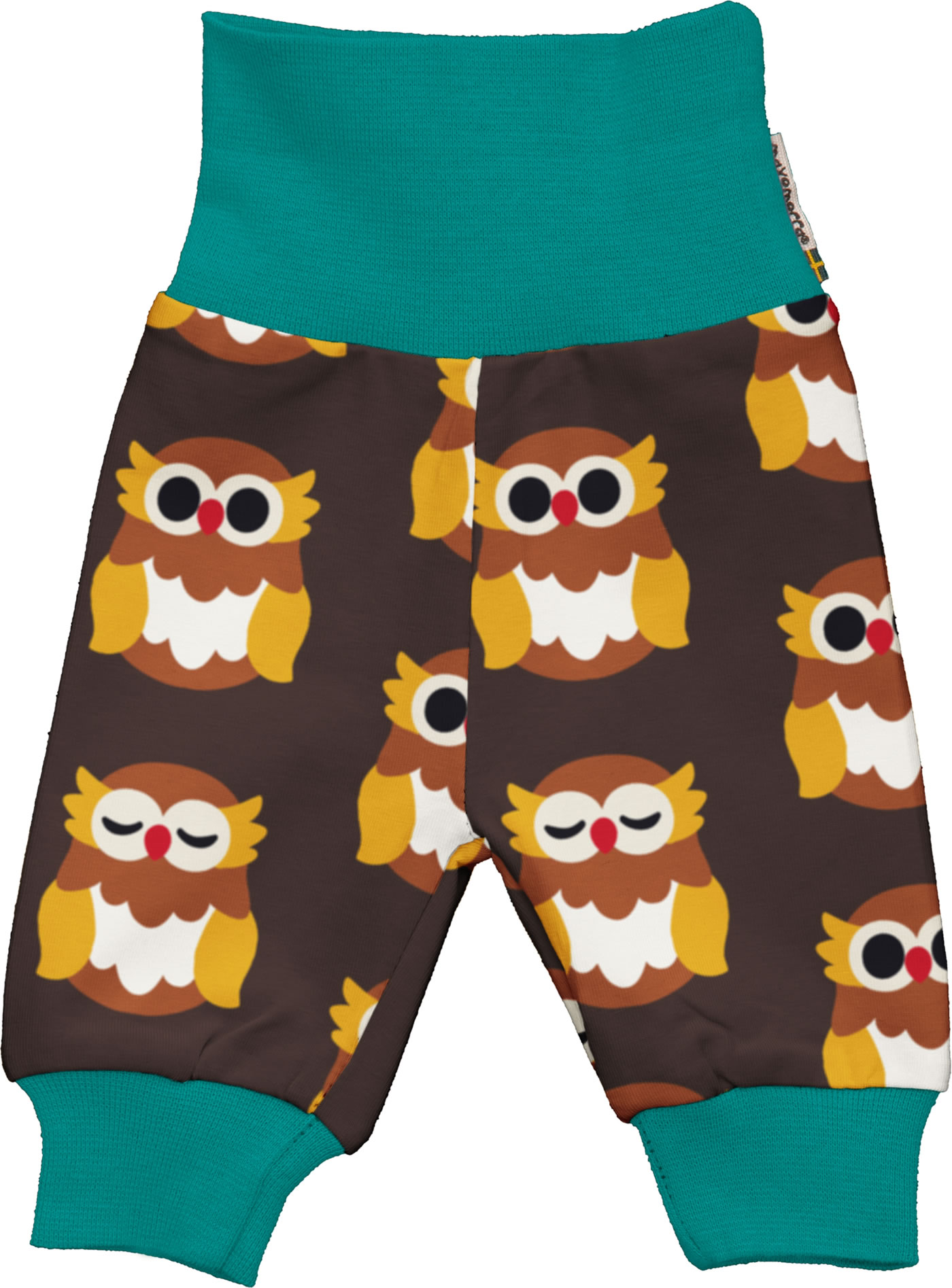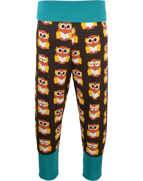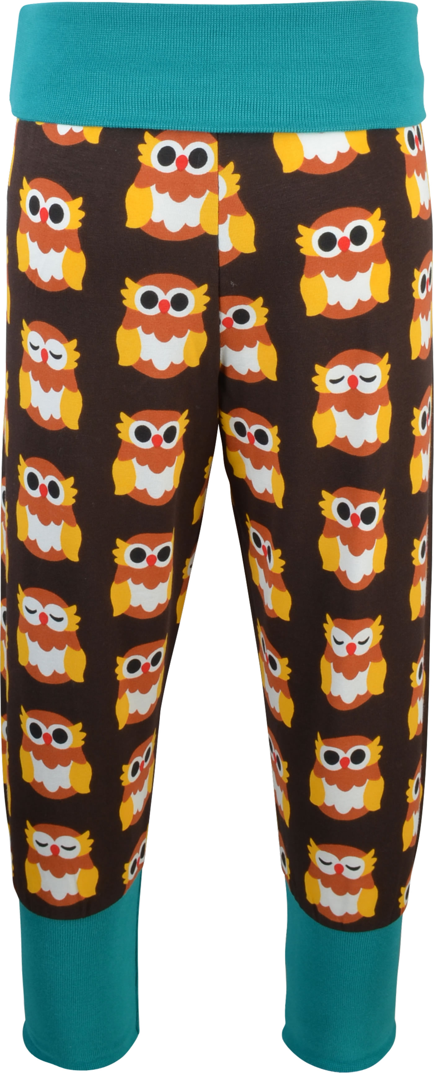 Gemütliche Bund-Hose in petrol mit Eulen-Motiven von MAXOMORRA. Das beliebte Kleidungsstück hat einen breiten, weichen Gummibund, der das An- und Ausziehen zum Kinderspiel macht. Das weiche Jersey-Material sorgt für einen hohen Tragekomfort.