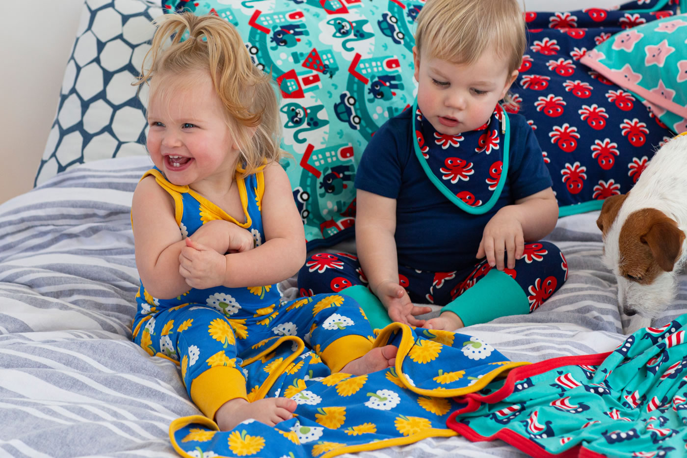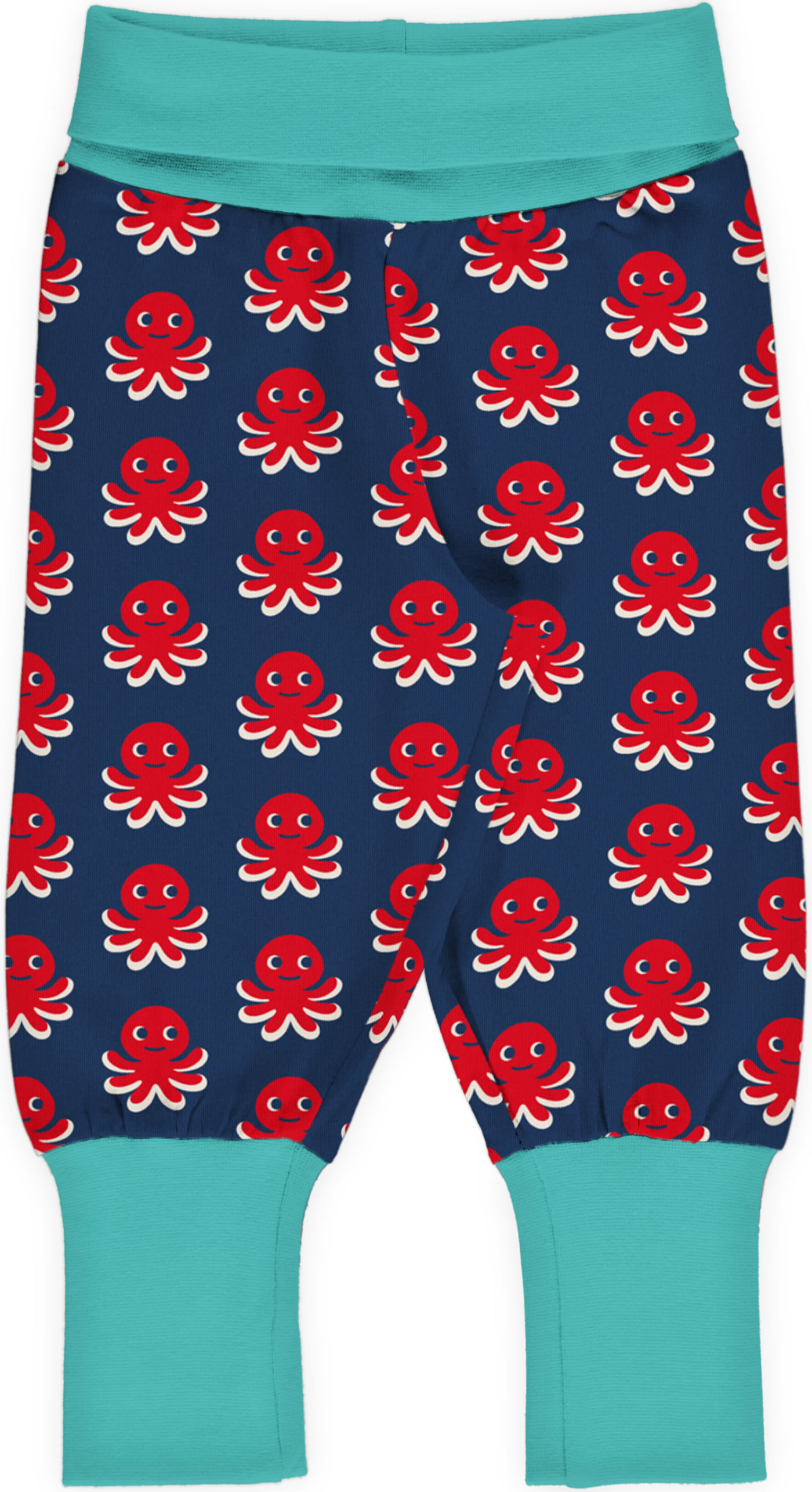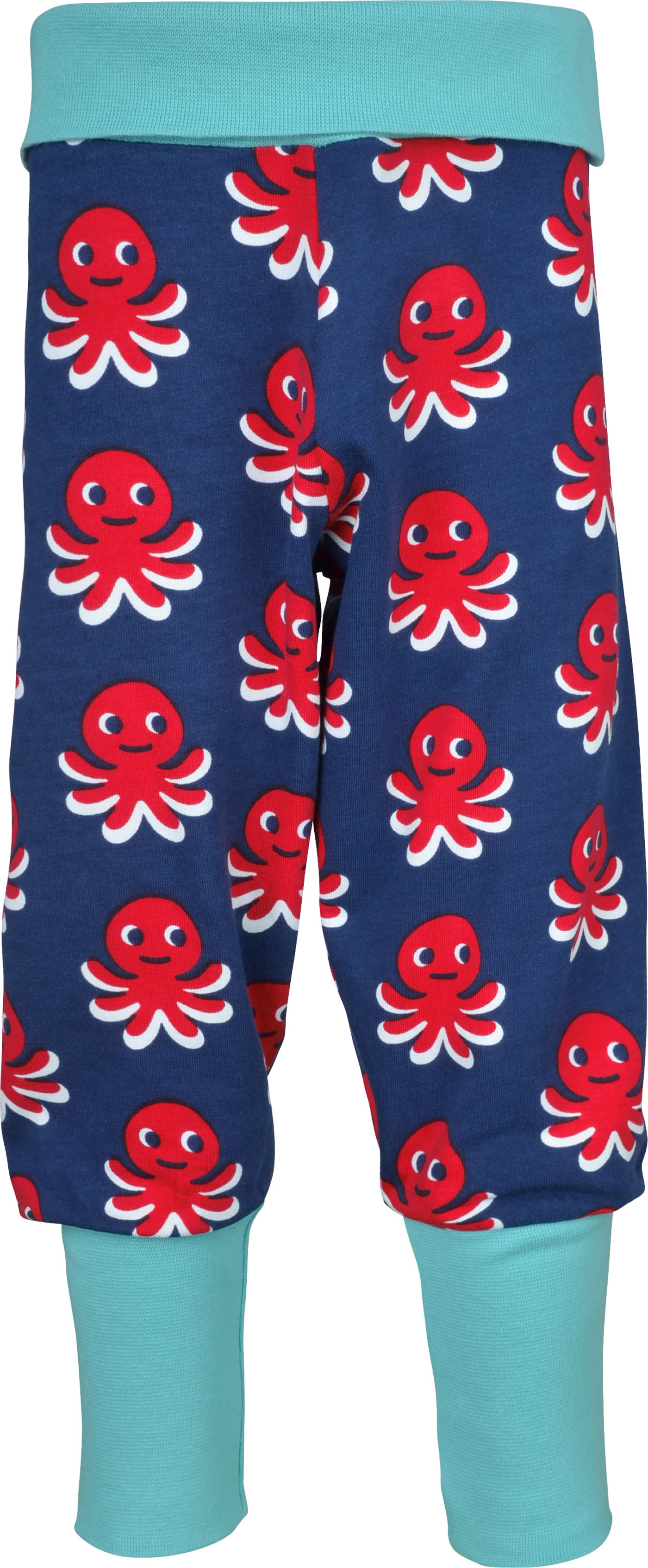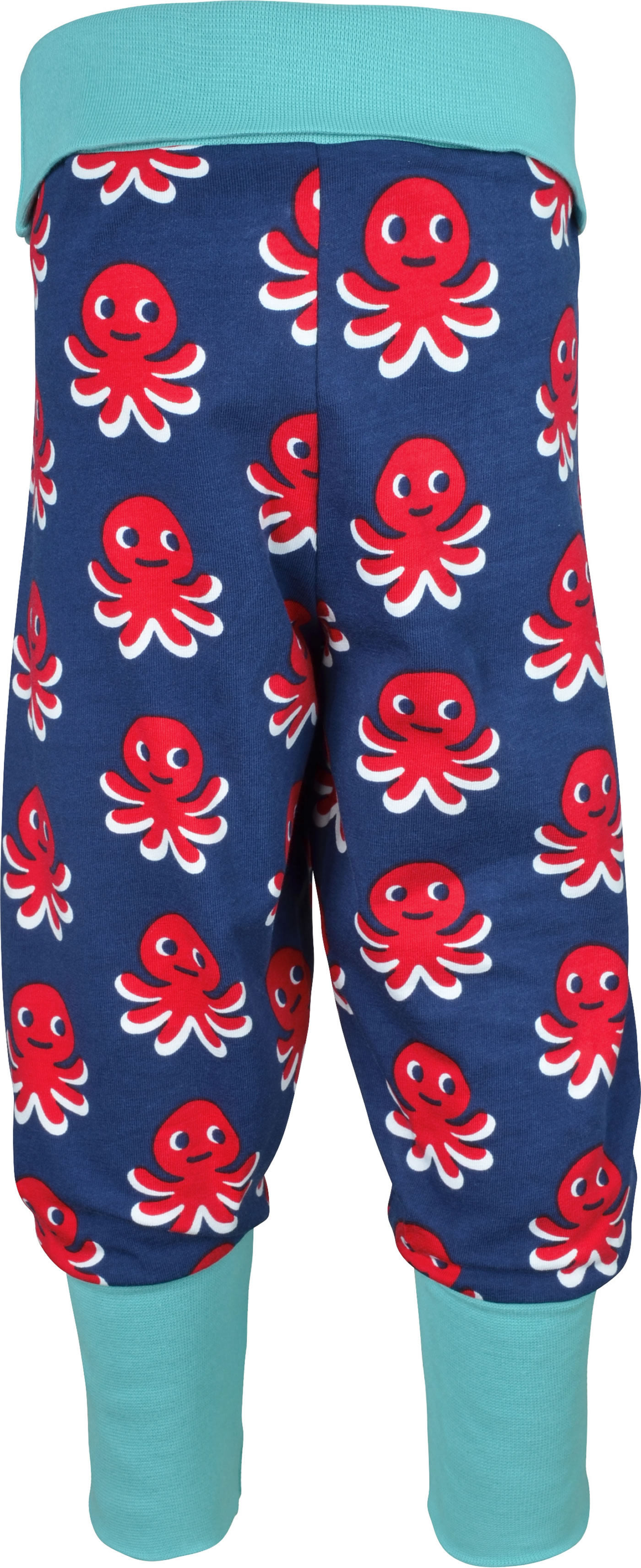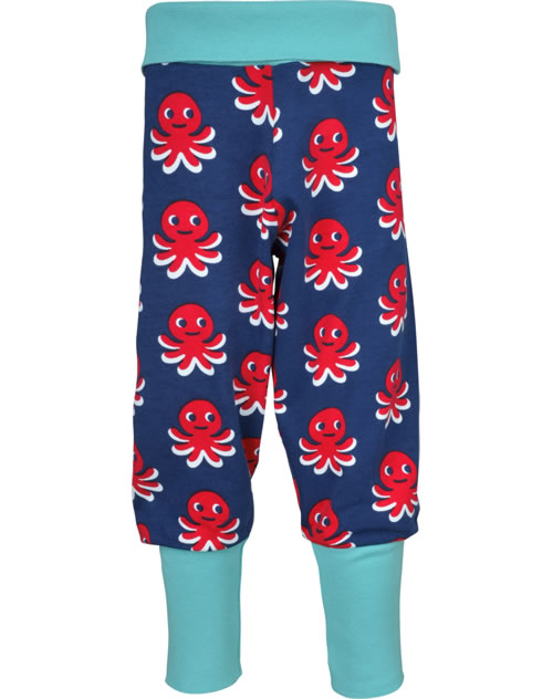 Gemütliche Bund-Hose in blau mit rotem Oktopus-Motiv von MAXOMORRA. Das beliebte Kleidungsstück hat einen breiten, weichen Gummibund, der das An- und Ausziehen zum Kinderspiel macht. Das weiche Jersey-Material sorgt für einen hohen Tragekomfort.