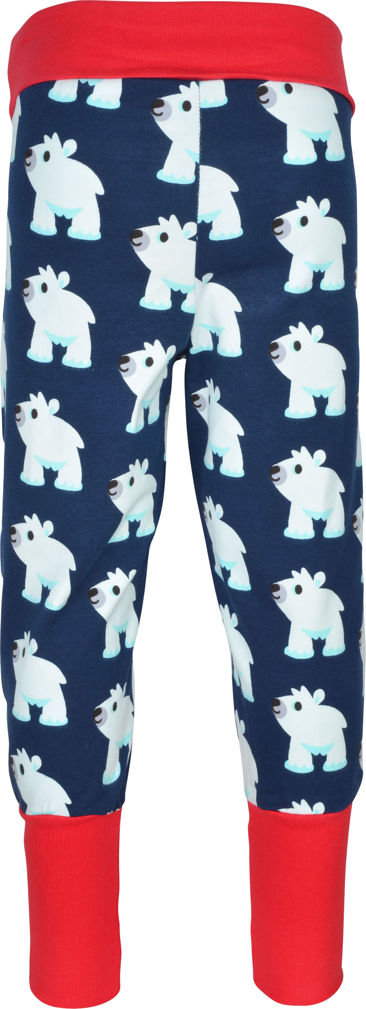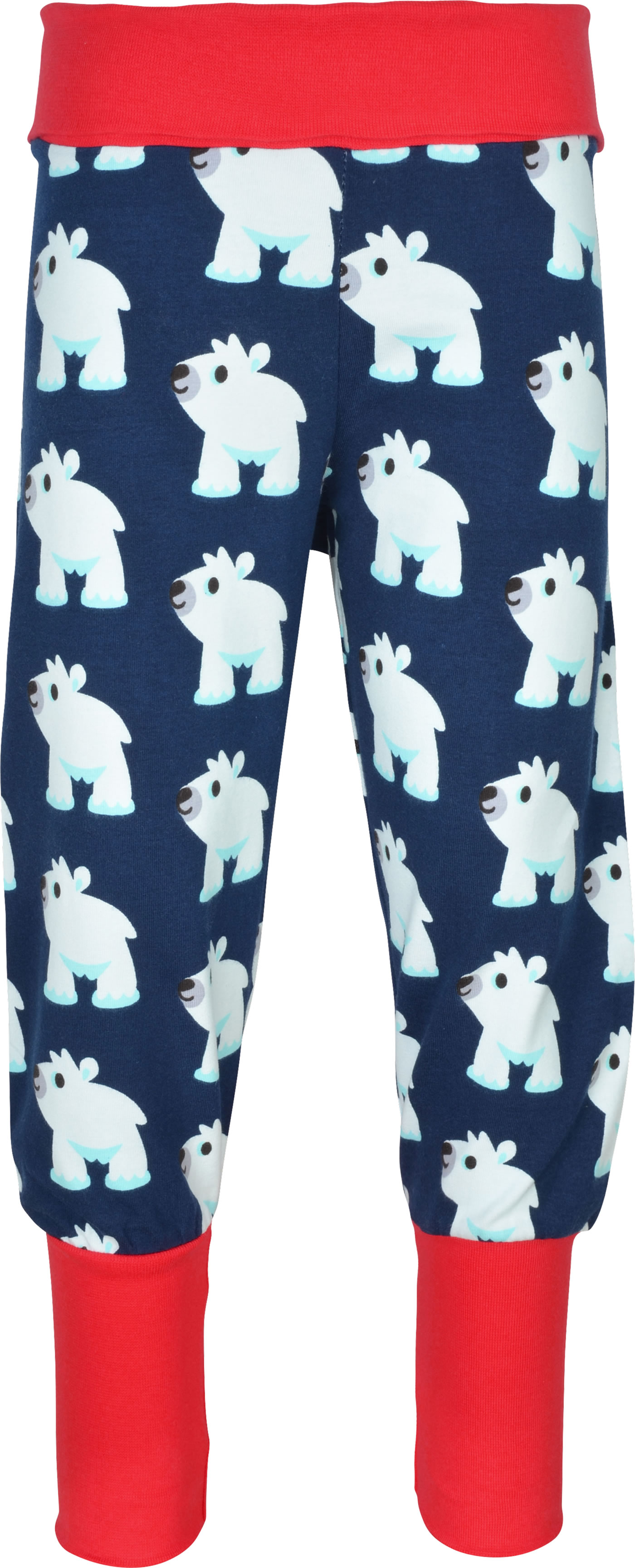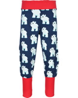 Gemütliche Bund-Hose in blau mit Eisbären-Motiven von MAXOMORRA. Das beliebte Kleidungsstück hat einen breiten, weichen Gummibund, der das An- und Ausziehen zum Kinderspiel macht. Das weiche Jersey-Material sorgt für einen hohen Tragekomfort.