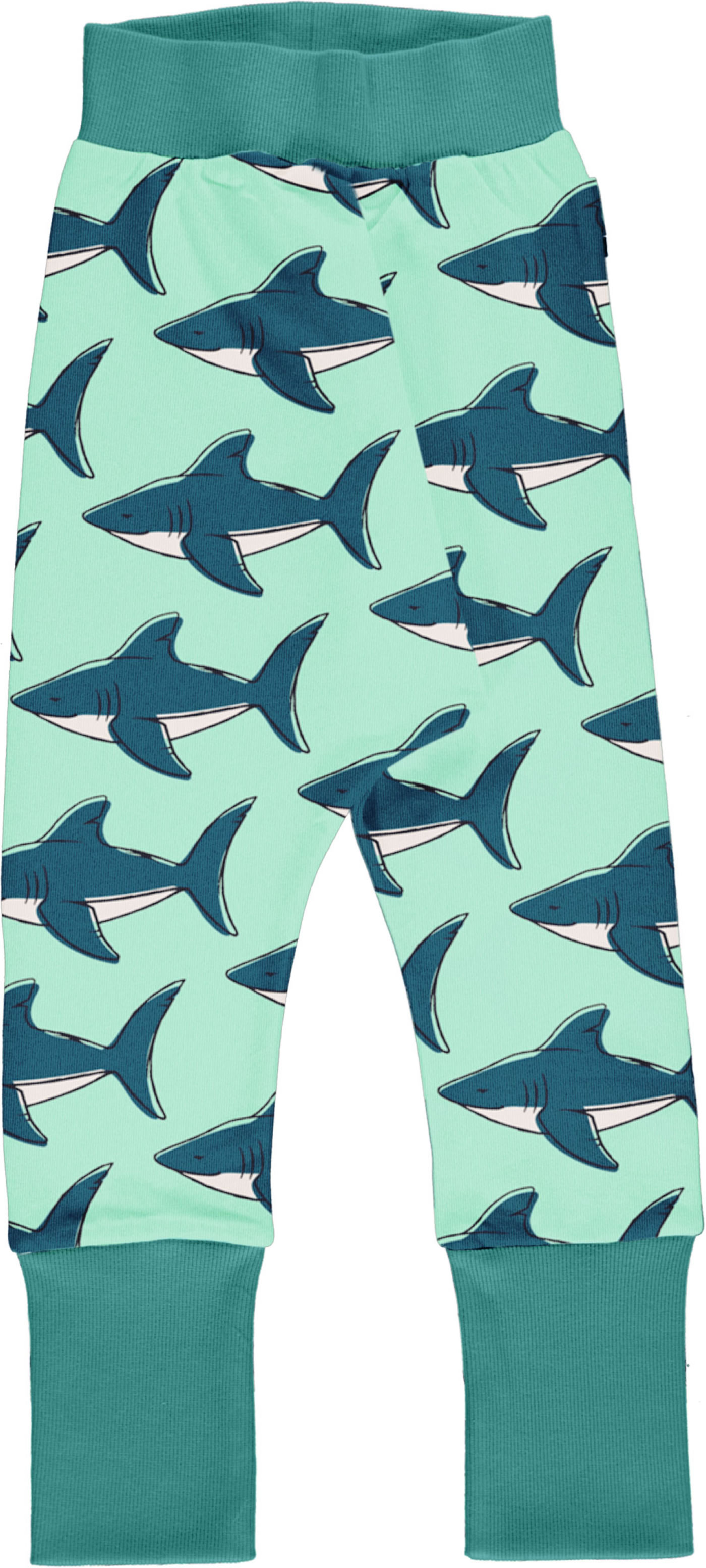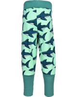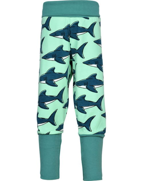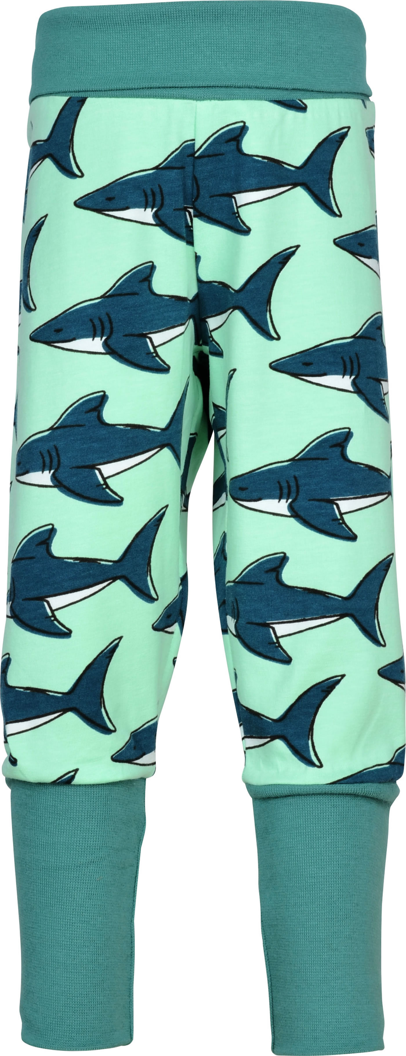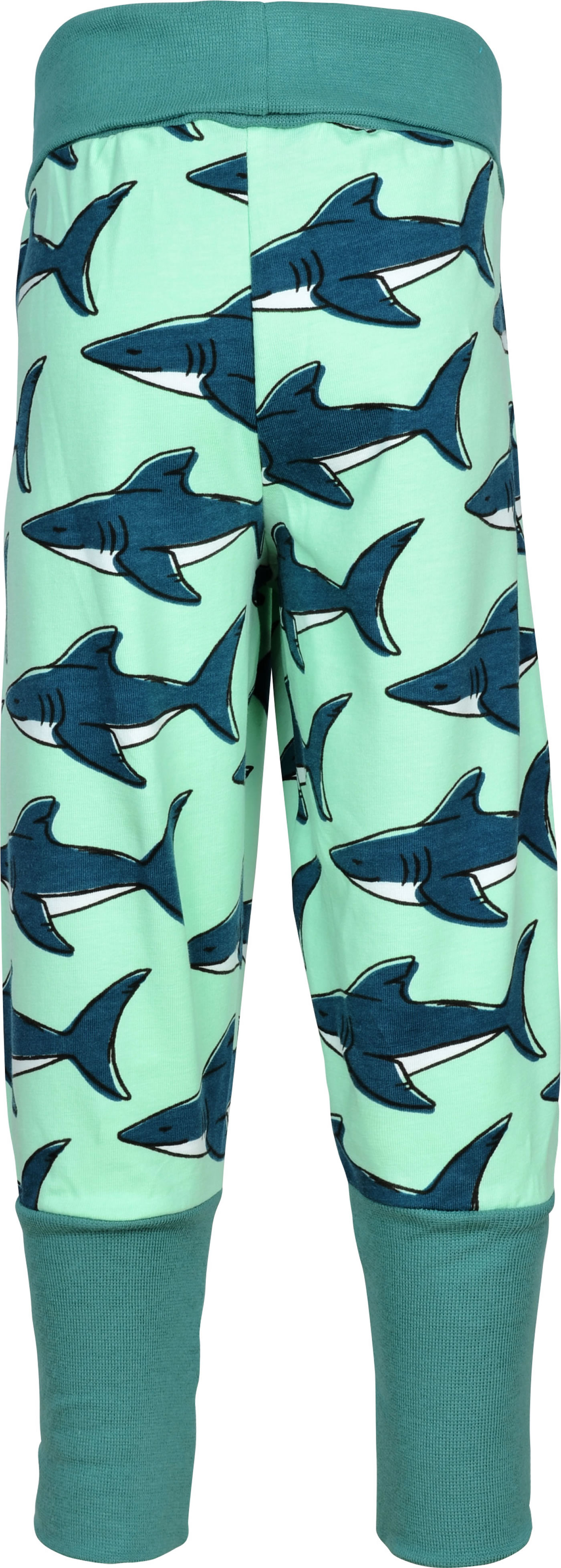 Gemütliche Bund-Hose in grün mit buntem Hai-Motiv von MAXOMORRA. Das beliebte Kleidungsstück hat einen breiten, weichen Gummibund, der das An- und Ausziehen zum Kinderspiel macht. Das weiche Jersey-Material sorgt für einen hohen Tragekomfort.