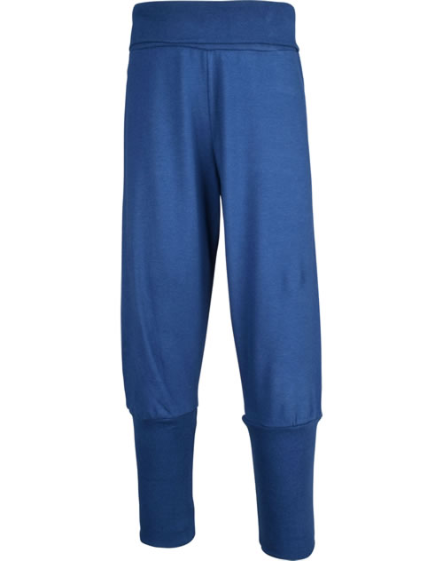Gemütliche Bund-Hose in dunkelblau von MAXOMORRA. Das beliebte Kleidungsstück hat einen breiten, weichen Gummibund, der das An- und Ausziehen zum Kinderspiel macht. Das weiche Jersey-Material sorgt für einen hohen Tragekomfort.