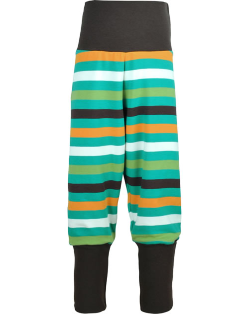 Gemütliche Bund-Hose in gestreift von MAXOMORRA. Das beliebte Kleidungsstück hat einen breiten, weichen Gummibund, der das An- und Ausziehen zum Kinderspiel macht. Das weiche Jersey-Material sorgt für einen hohen Tragekomfort.