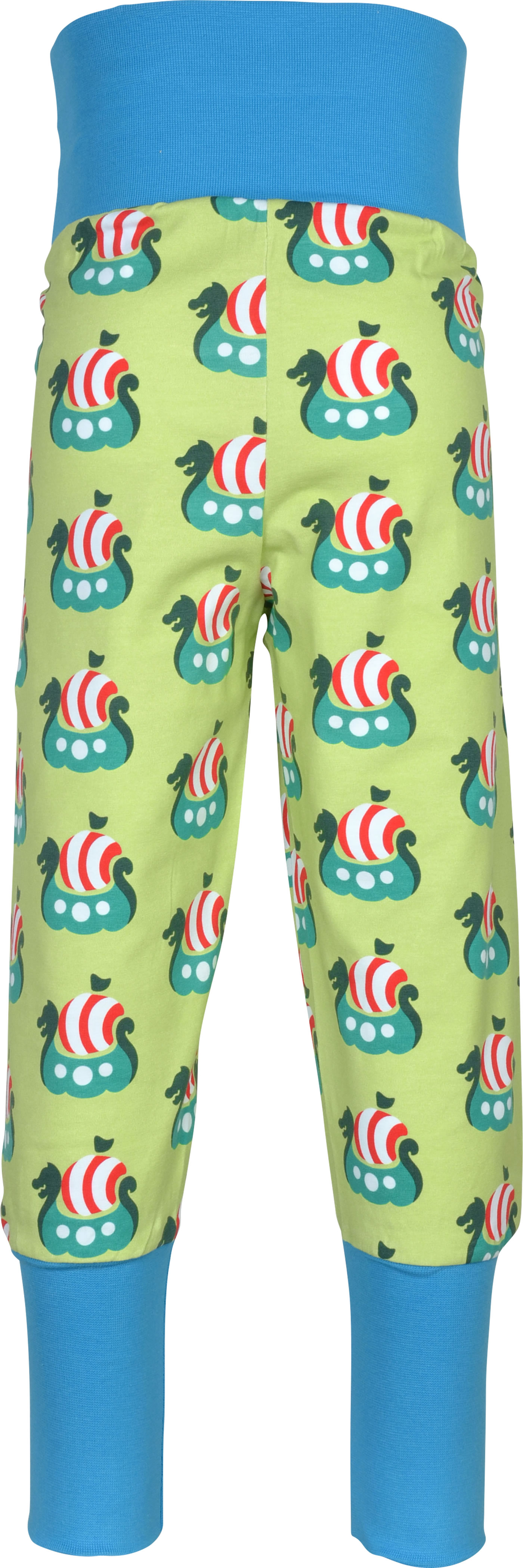 Gemütliche Bund-Hose in grün mit Schiff-Motiven von MAXOMORRA. Das beliebte Kleidungsstück hat einen breiten, weichen Gummibund, der das An- und Ausziehen zum Kinderspiel macht. Das weiche Jersey-Material sorgt für einen hohen Tragekomfort.