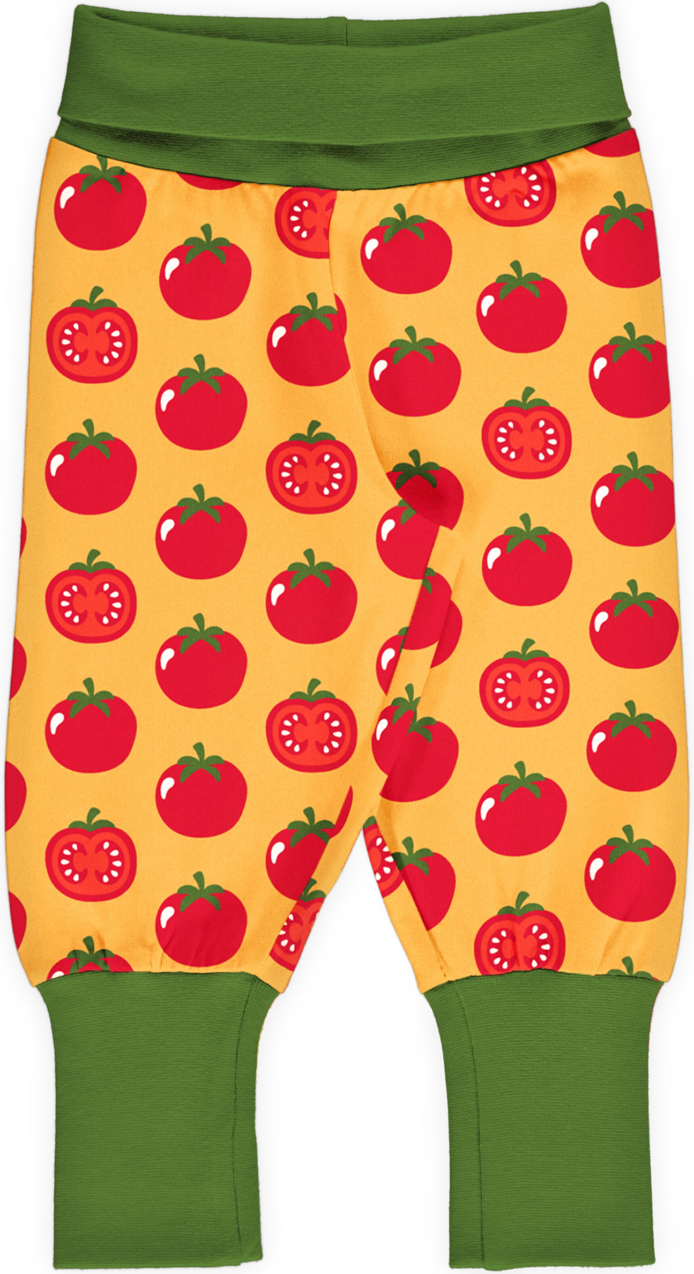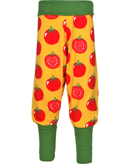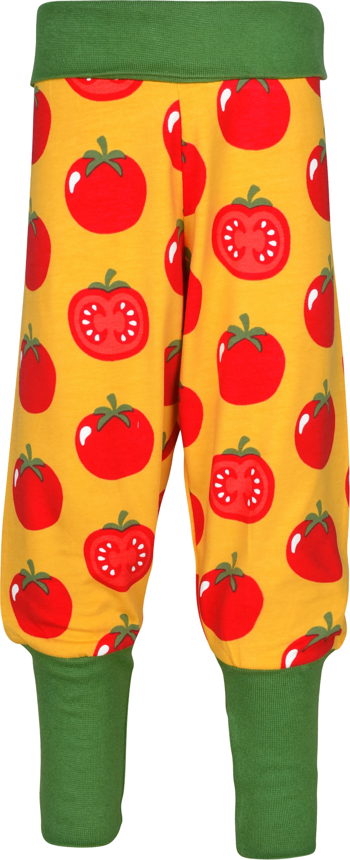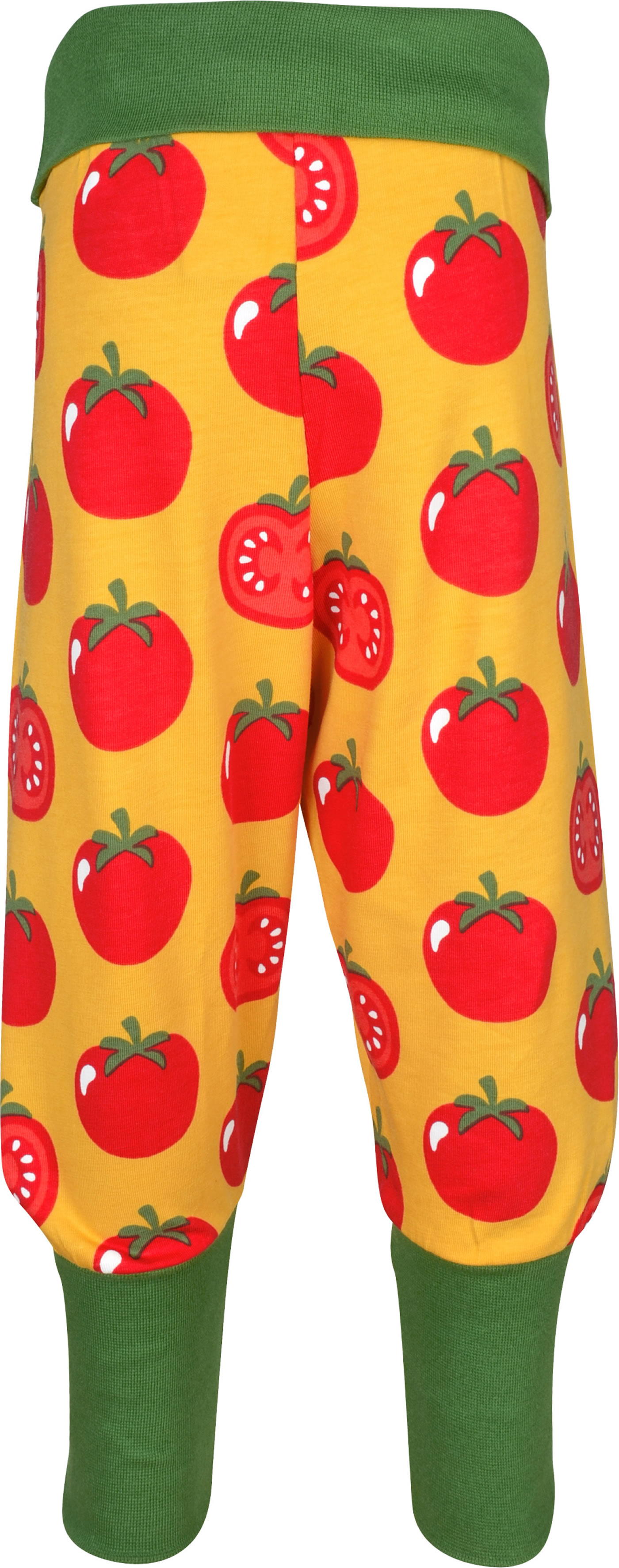 Gemütliche Bund-Hose in gelb mit buntem Tomaten-Motiv von MAXOMORRA. Das beliebte Kleidungsstück hat einen breiten, weichen Gummibund, der das An- und Ausziehen zum Kinderspiel macht. Das weiche Jersey-Material sorgt für einen hohen Tragekomfort.