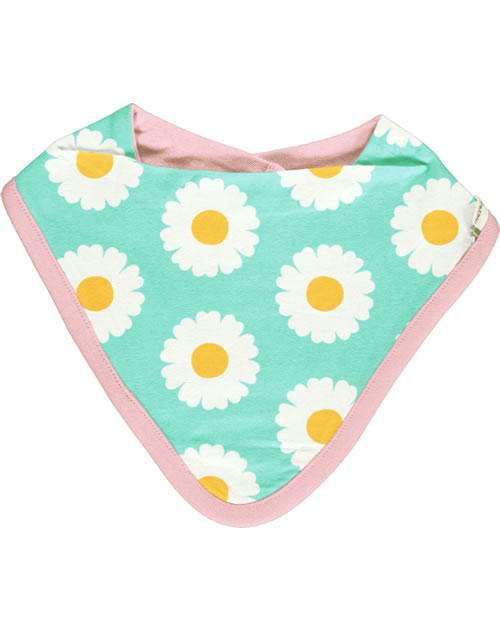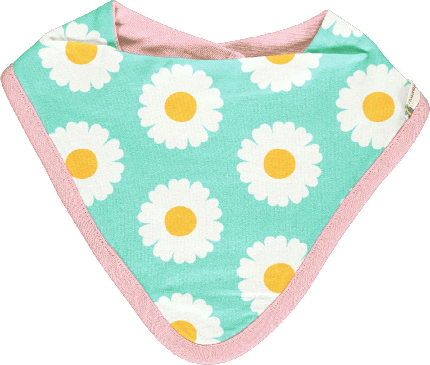 Das doppellagige Halstuch von MAXOMORRA in blau mit Gänseblümchen-Motiven und zwei Druckknöpfen aus ökologischer Baumwolle sorgt für einen hohen Tragekomfort.