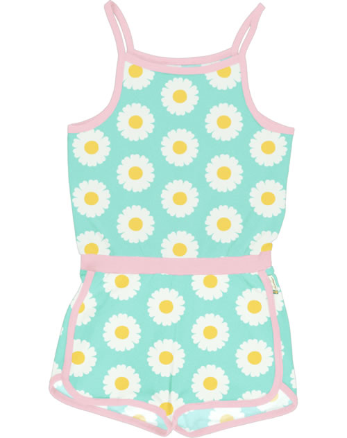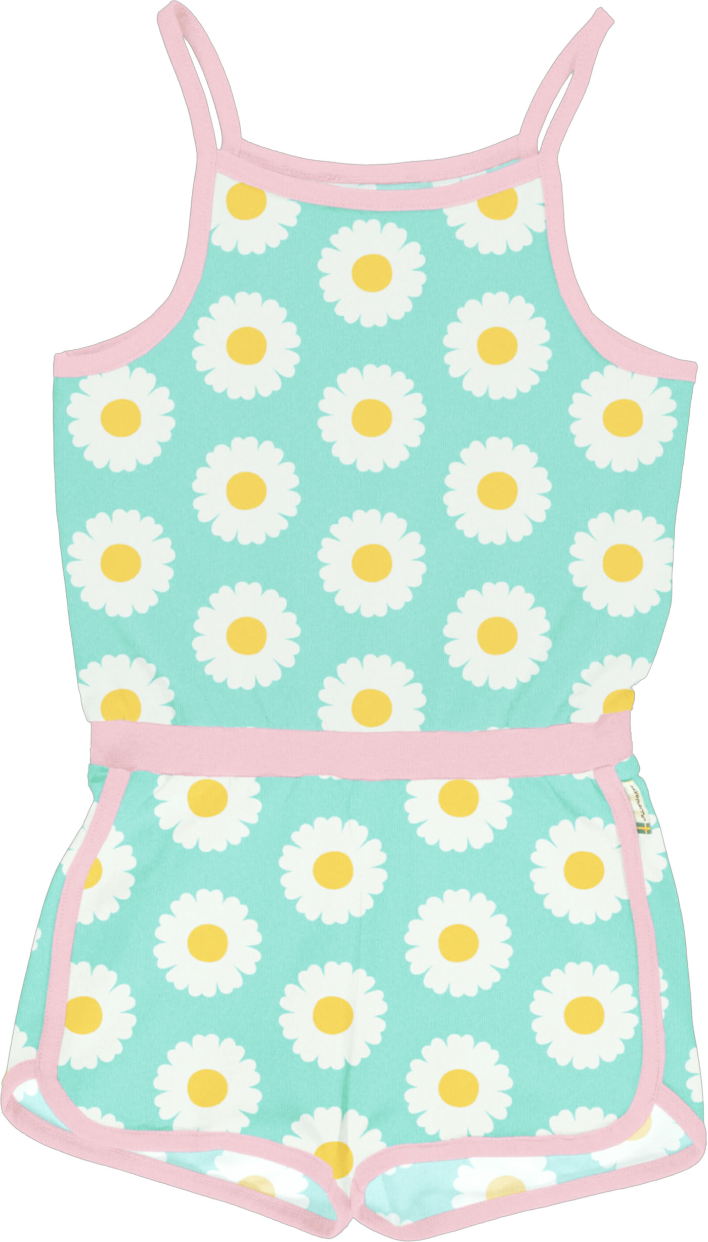 Toller Jumpsuit mit schönen Gänseblümchen-Motiven und Spaghetti-Trägern von MAXOMORRA für Mädchen. Die schönen Farben und die kontrastfarbenen Motive machen dieses Kleidungsstück zu einem absoluten Blickfang. Ideal für die besonders warmen Tage im Jahr lässt sich der Jumpsuit mit kurzem Bein durch das weiche und luftige Material angenehm tragen.