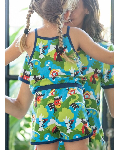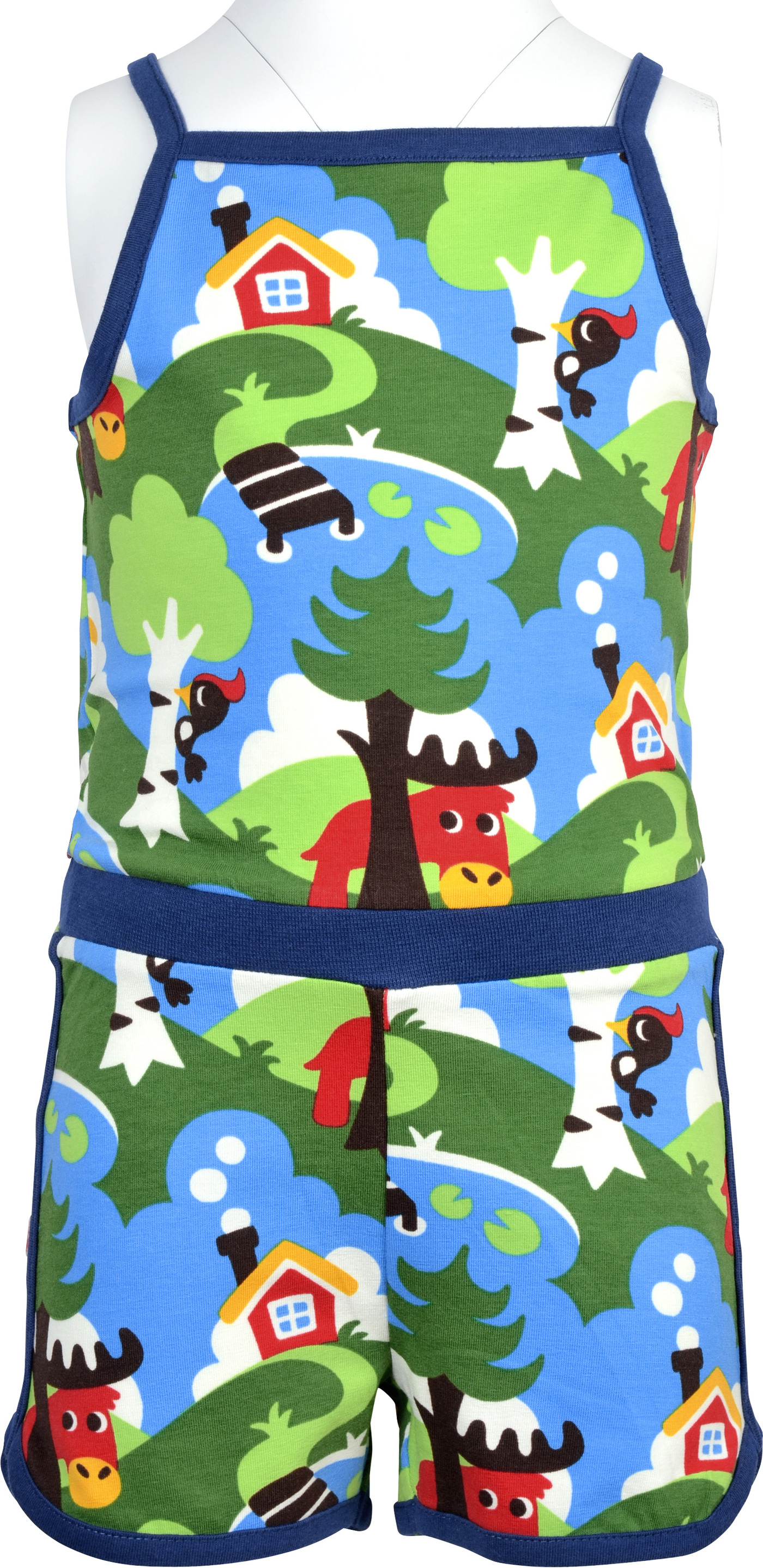 Maxomorra Jumpsuit mit Trägern kurz COUNTRYSIDE - Grün/Blau
