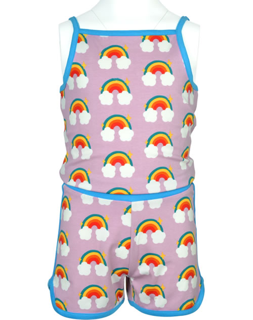 Toller Jumpsuit mit schönen Regenbogen-Motiven und Spaghetti-Trägern von MAXOMORRA für Mädchen. Die schönen Farben und die kontrastfarbenen Motive machen dieses Kleidungsstück zu einem absoluten Blickfang. Ideal für die besonders warmen Tage im Jahr lässt sich der Jumpsuit mit kurzem Bein durch das weiche und luftige Material angenehm tragen.