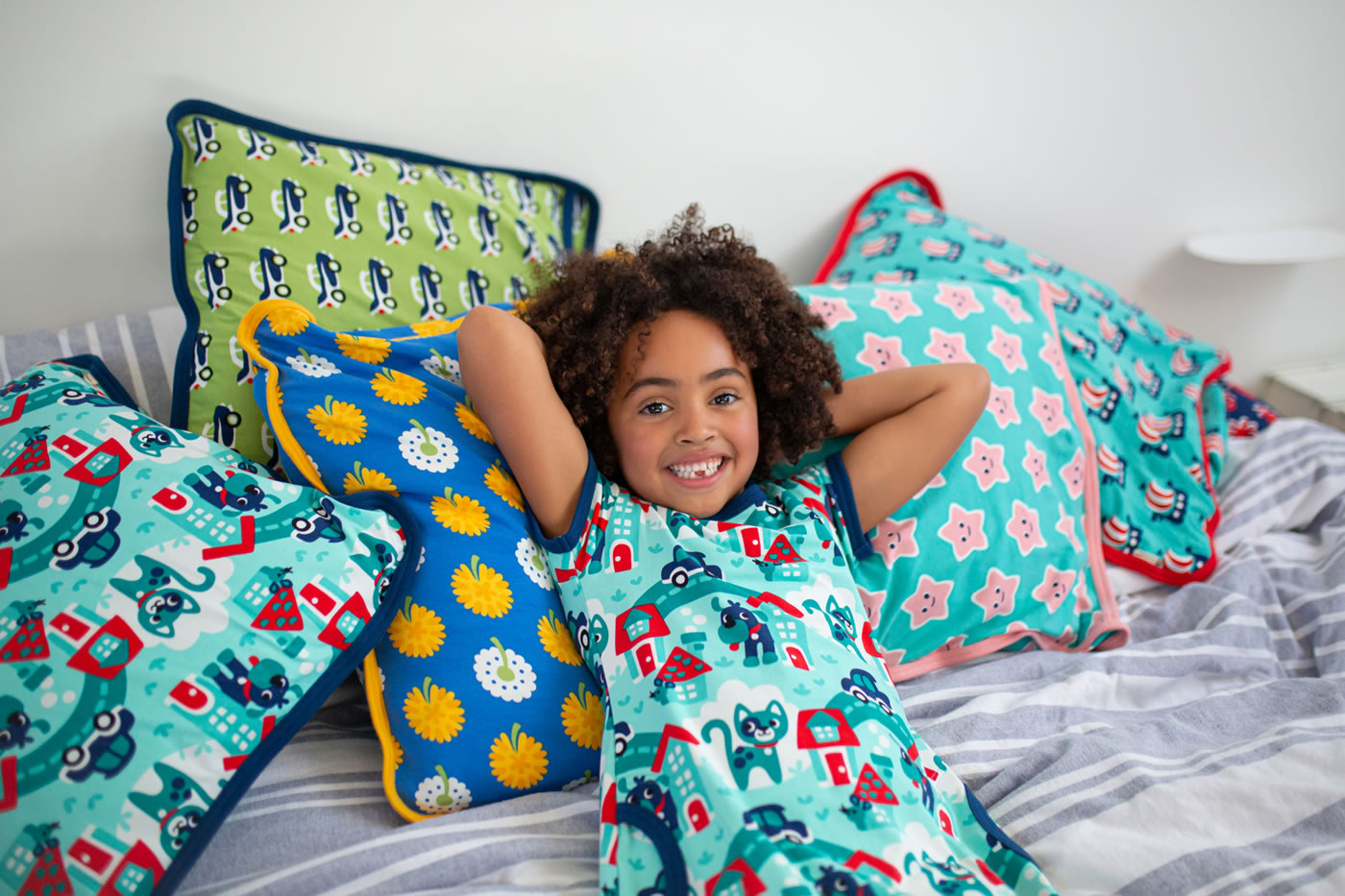 Hübscher Kissenbezug aus weichem Jersey-Material mit fröhliche Seestern-Motiven von MAXOMORRA. Auf der Rückseite befindet sich ein Einschub für das Kissen.