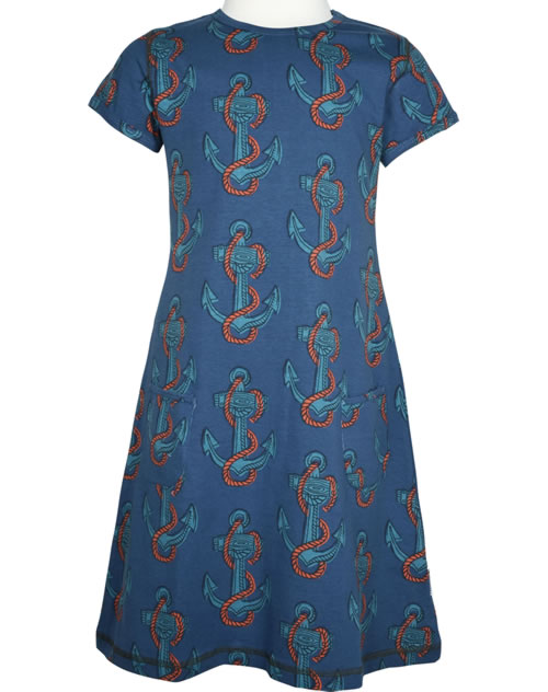 Maxomorra Kleid Kurzarm ANKER blau/rot