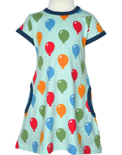 Schönes Kurzarm-Kleid mit farbenfrohem Luftballon-Muster von MAXOMORRA. Das peppige Design machen dieses hübsche Kleid zu einem tollen Blickfang. Das weiche Material sorgt für einen angenehmen Tragekomfort. Abgerundete, aufgesetzte Taschen auf der Vorderseite bieten Platz für Kleinigkeiten. Ab Größe 98/104 ohne Druckknöpfe an der Schulter.