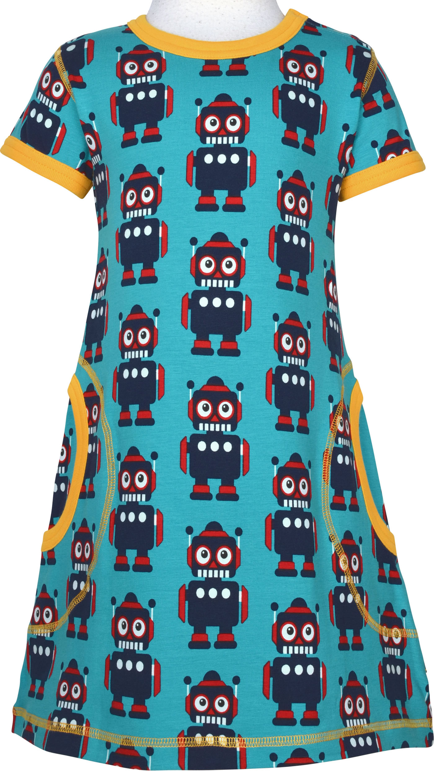 Maxomorra Kleid Kurzarm CLASSIC ROBOT petrol/orange