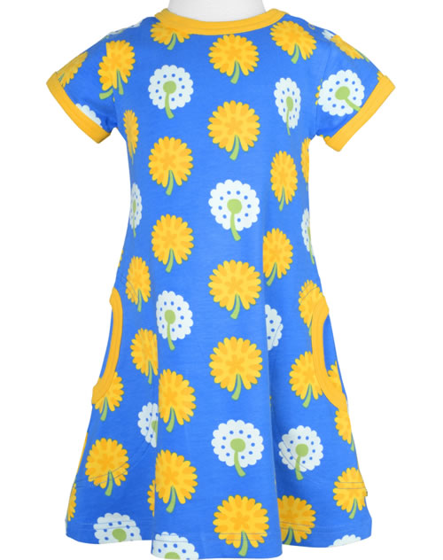 Maxomorra Kleid Kurzarm DANDELION blau/gelb