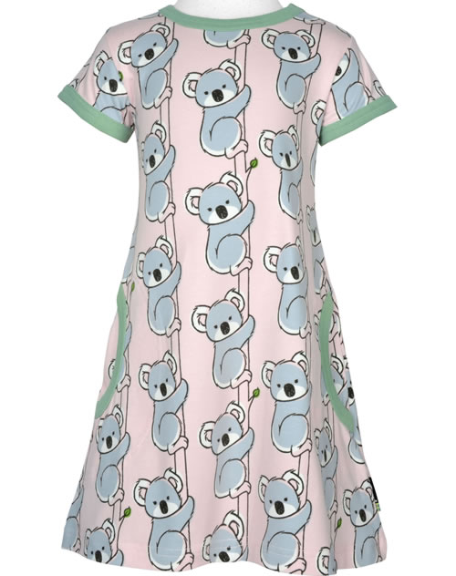 Maxomorra Kleid Kurzarm KOALA rosa/türkis GOTS
