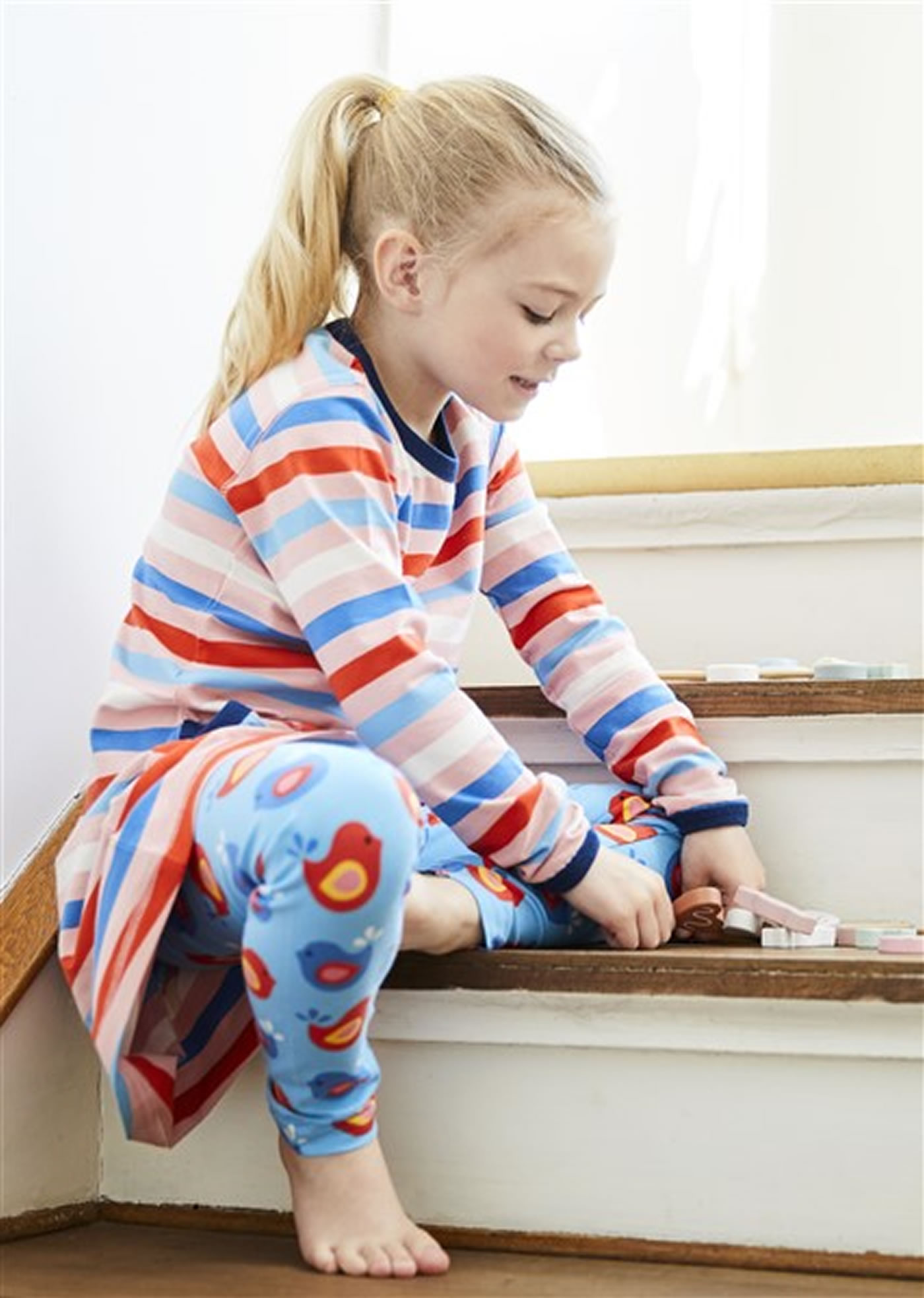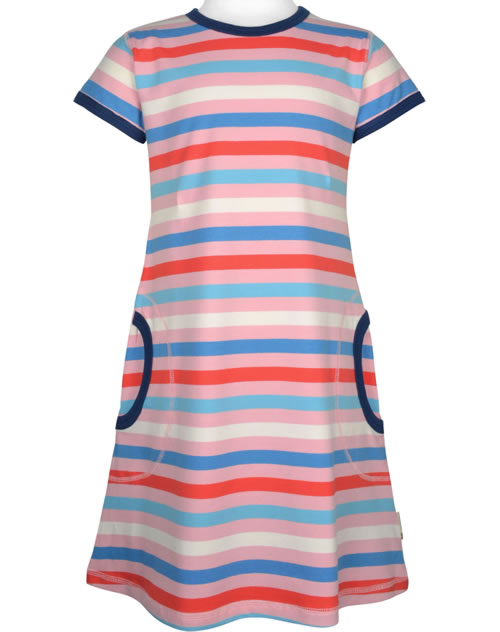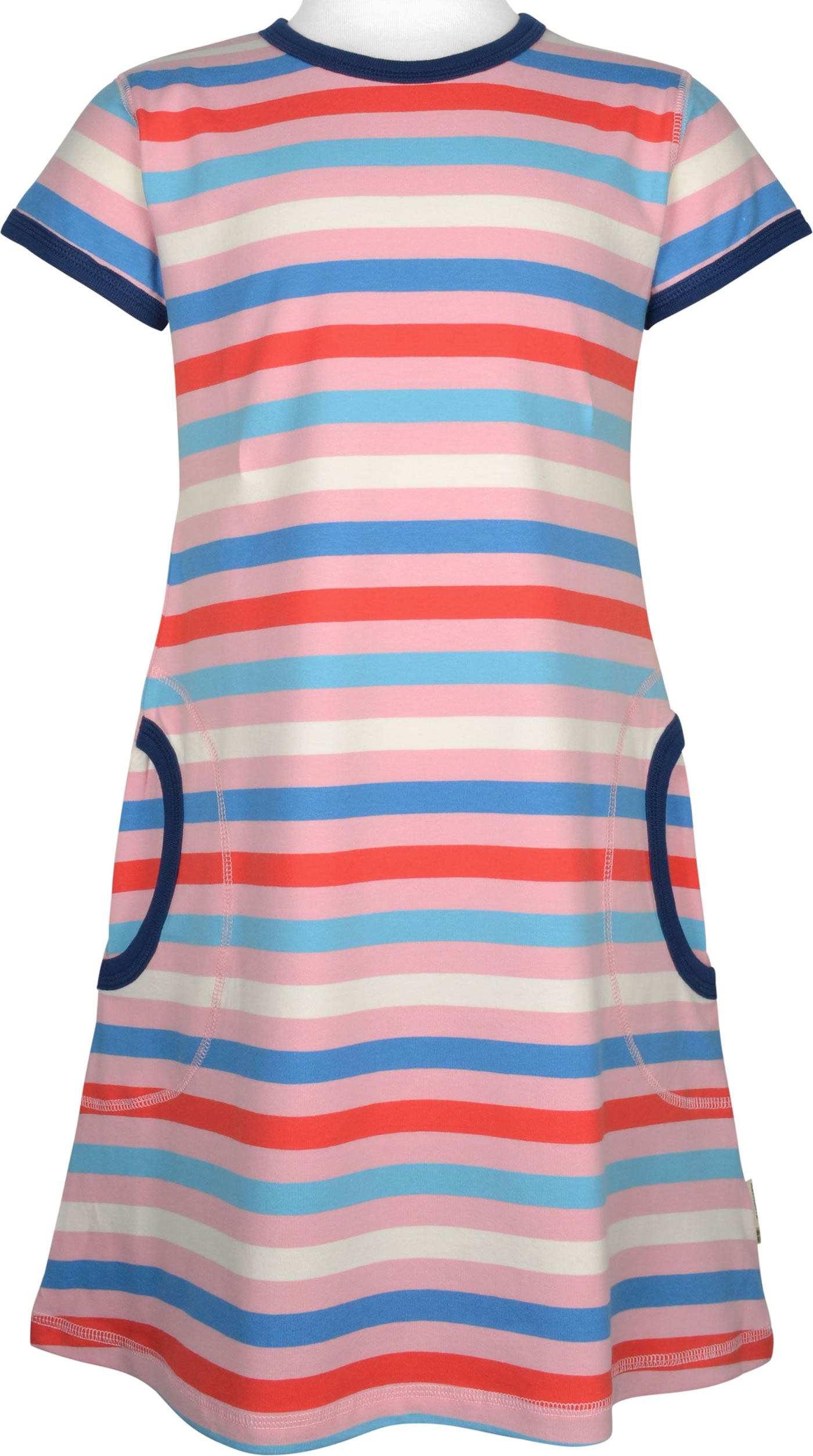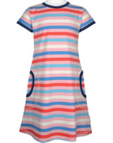 Maxomorra Kleid Kurzarm Streifen Blossom rosa/blau GOTS