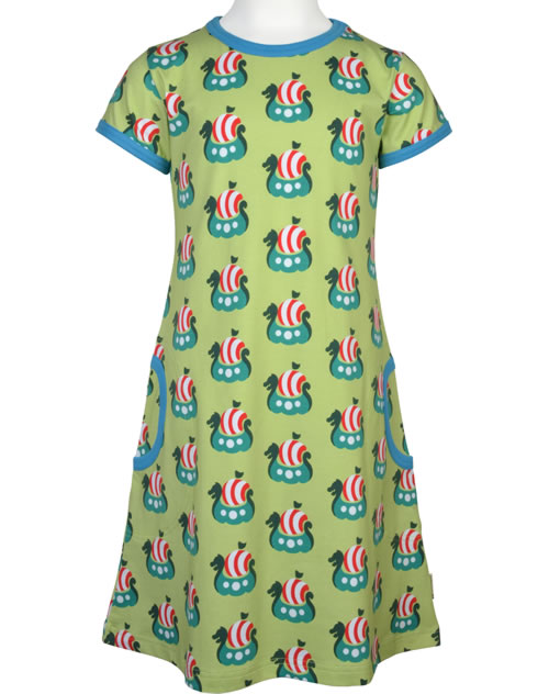 Maxomorra Kleid Kurzarm TALES SHIP grün