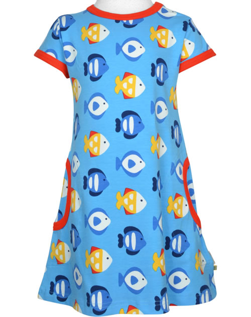 Maxomorra Kleid Kurzarm TROPICAL AQUARIUM blau GOTS