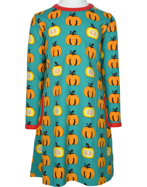 Maxomorra Kleid Langarm GARDEN PUMPKIN petrol/rot/orange
