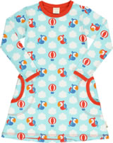Maxomorra Kleid Langarm PARROT SAFARI blau GOTS