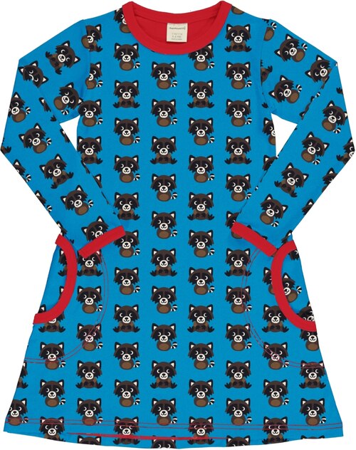 Langarm-Kleid mit tollem Waschbären-Muster von MAXOMORRA. Die bunten Farben und das peppige Design machen dieses hübsche Kleid zu einem tollen Blickfang. Das weiche Material sorgt für einen angenehmen Tragekomfort. Abgerundete, aufgesetzte Taschen auf der Vorderseite bieten Platz für Kleinigkeiten. Ab Größe 98/104 ohne Druckknöpfe an der Schulter.