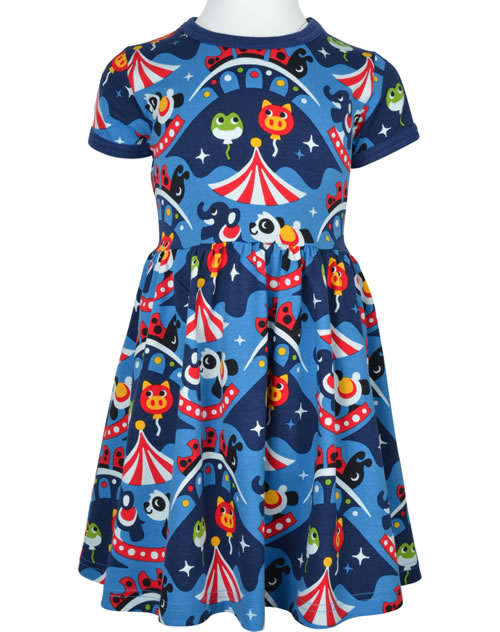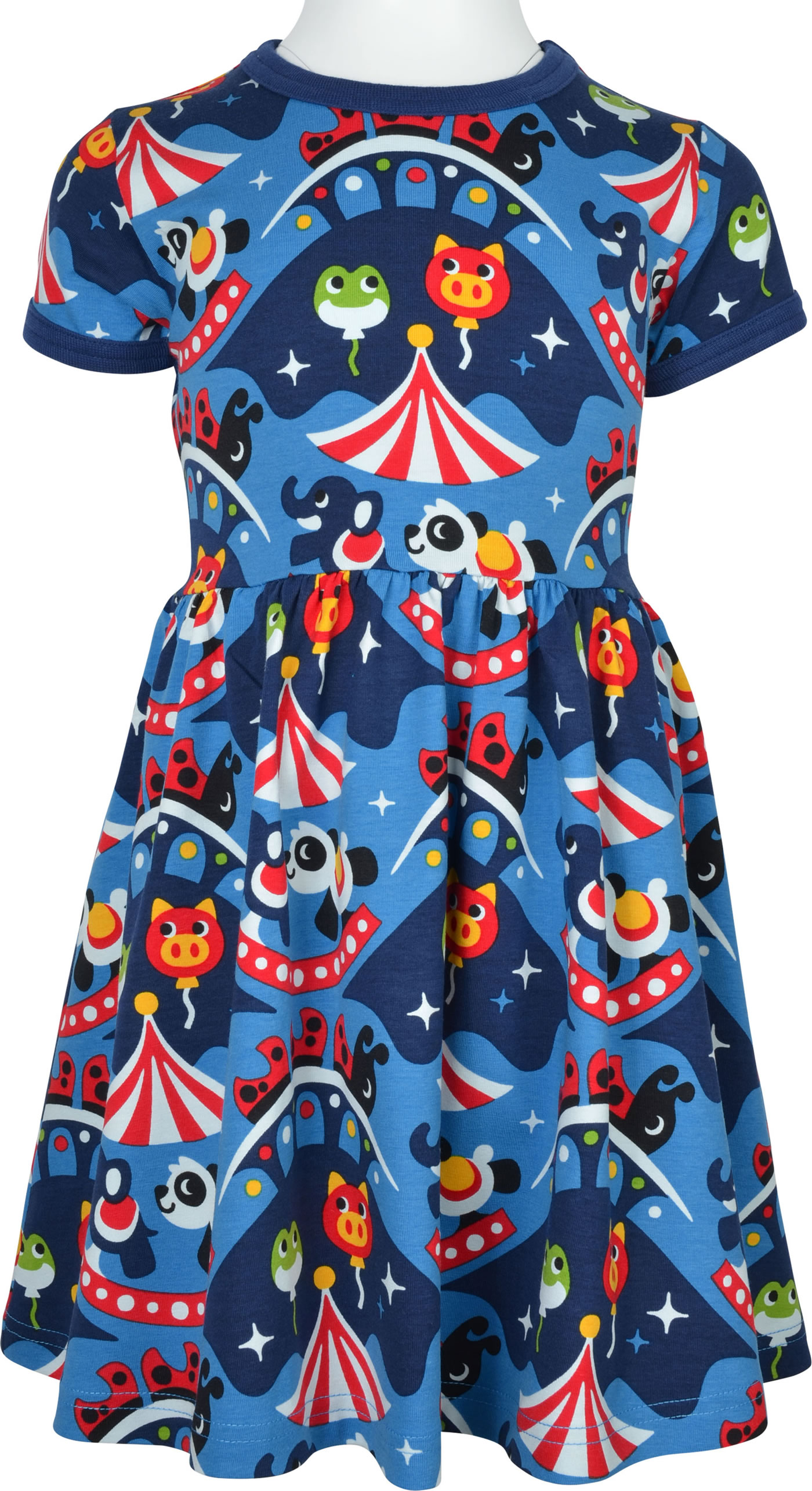 Maxomorra Kleid m. weitem Rock Kurzarm FAIRGROUND blau SP22AX01-2223 GOTS
