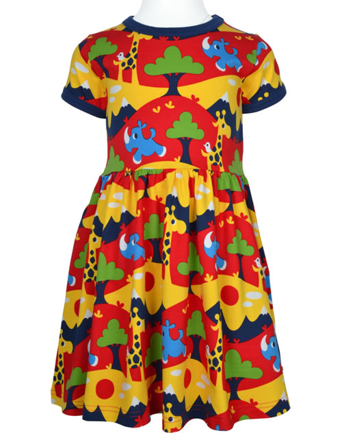 Maxomorra Kleid m. weitem Rock Kurzarm SAVANNA bunt SP22BX01-2223 GOTS