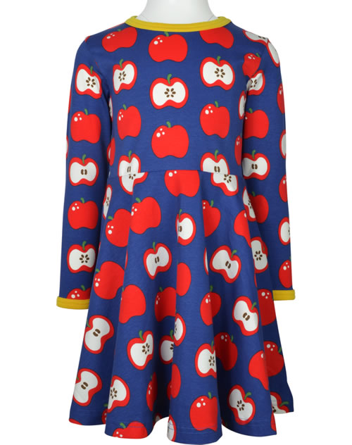 Maxomorra Kleid m. weitem Rock Langarm FARM APPLE blau/rot