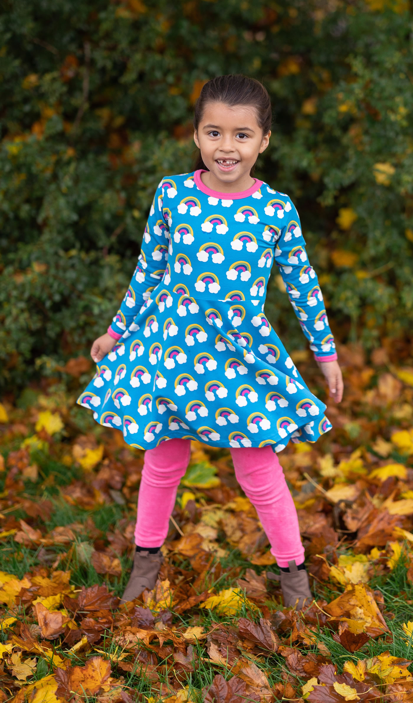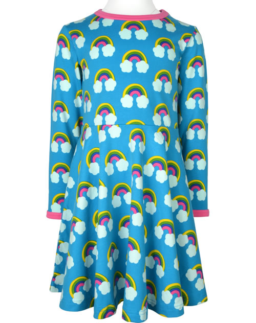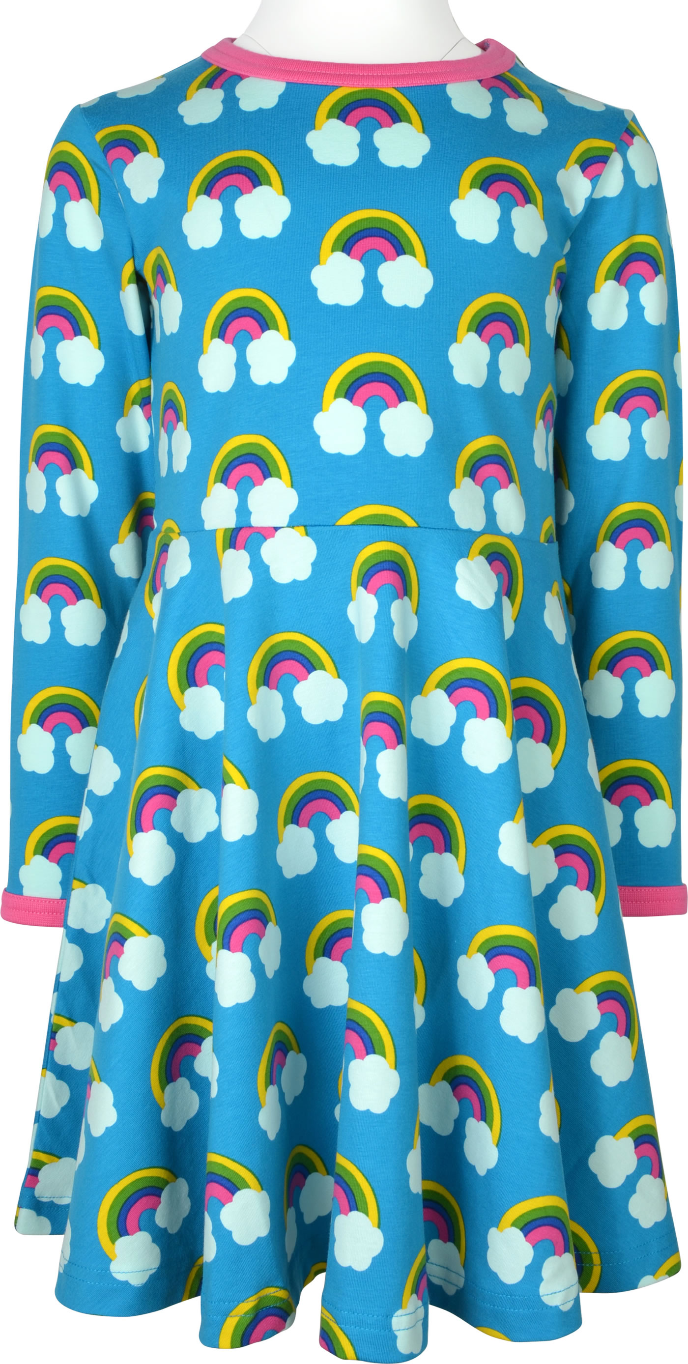 Maxomorra Kleid m. weitem Rock Langarm FARM RAINBOW blau/rosa