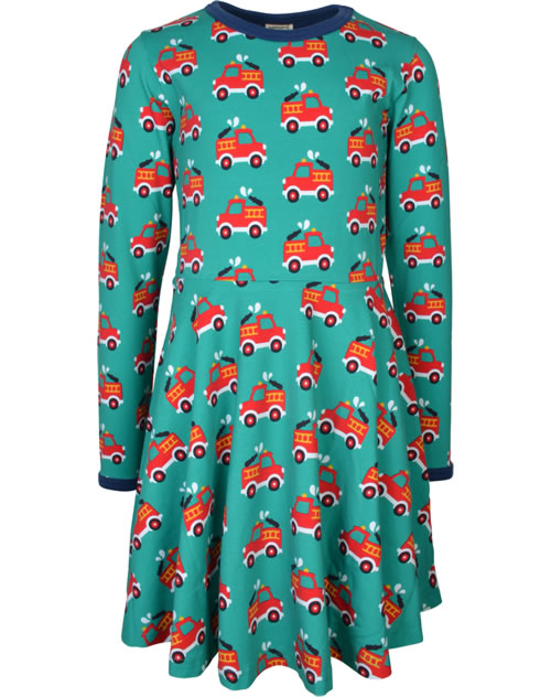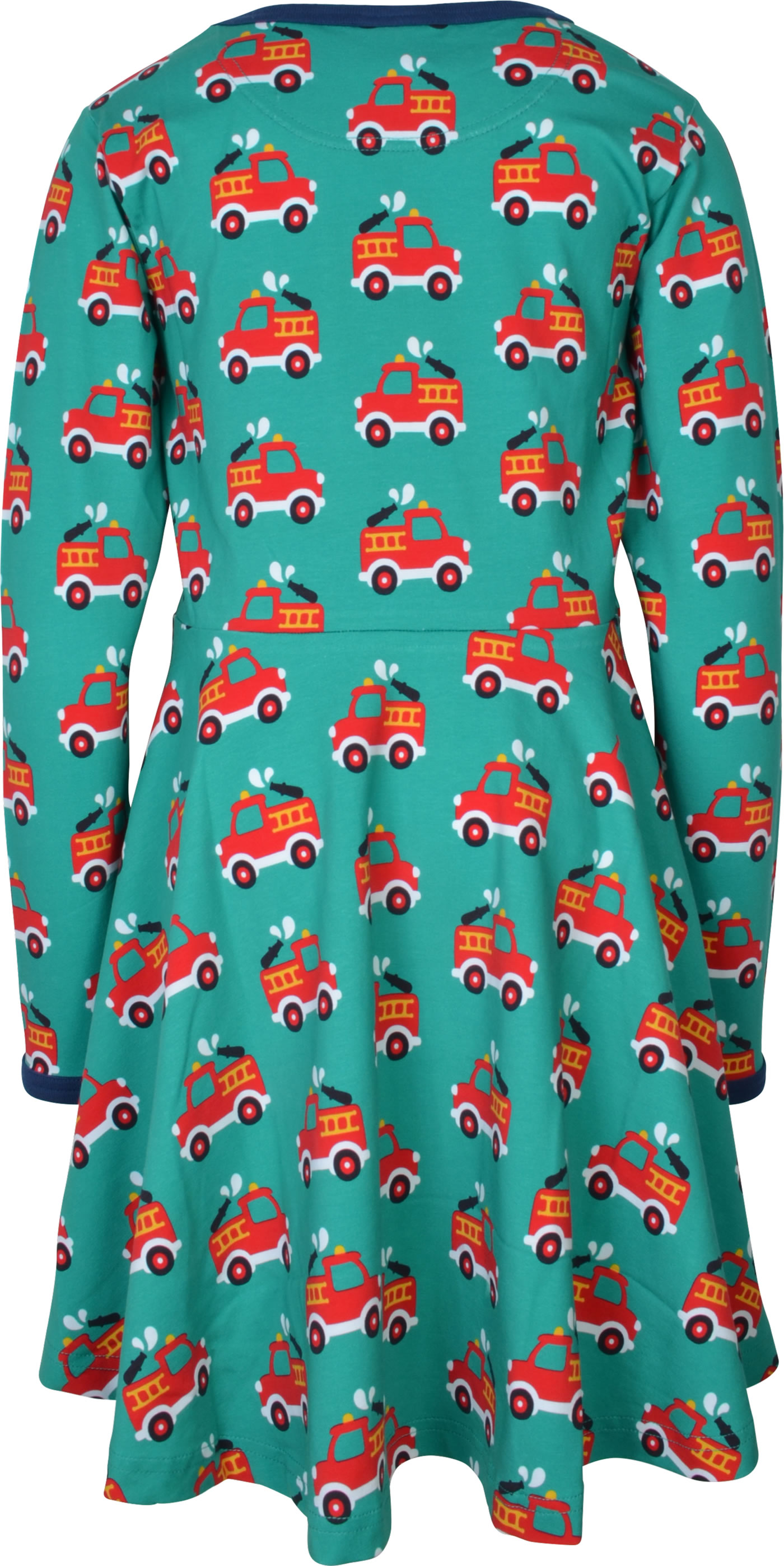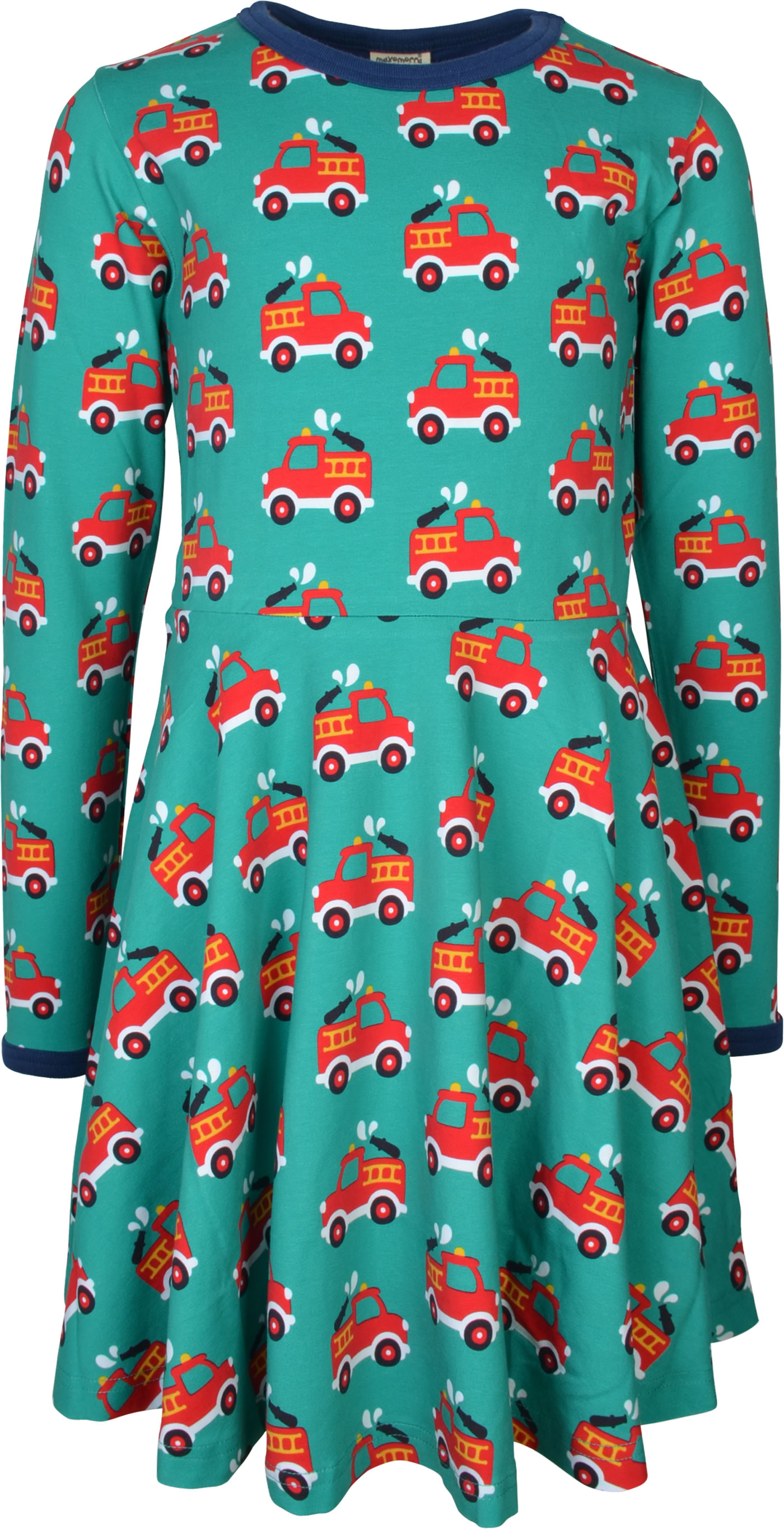 Maxomorra Kleid m. weitem Rock Langarm FIRE TRUCK grün GOTS