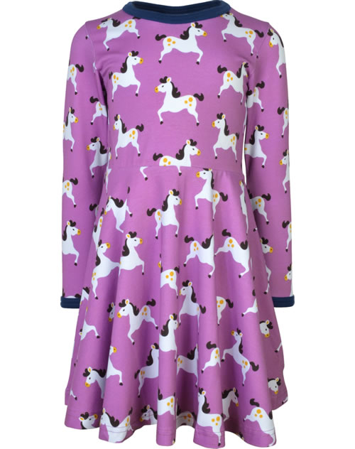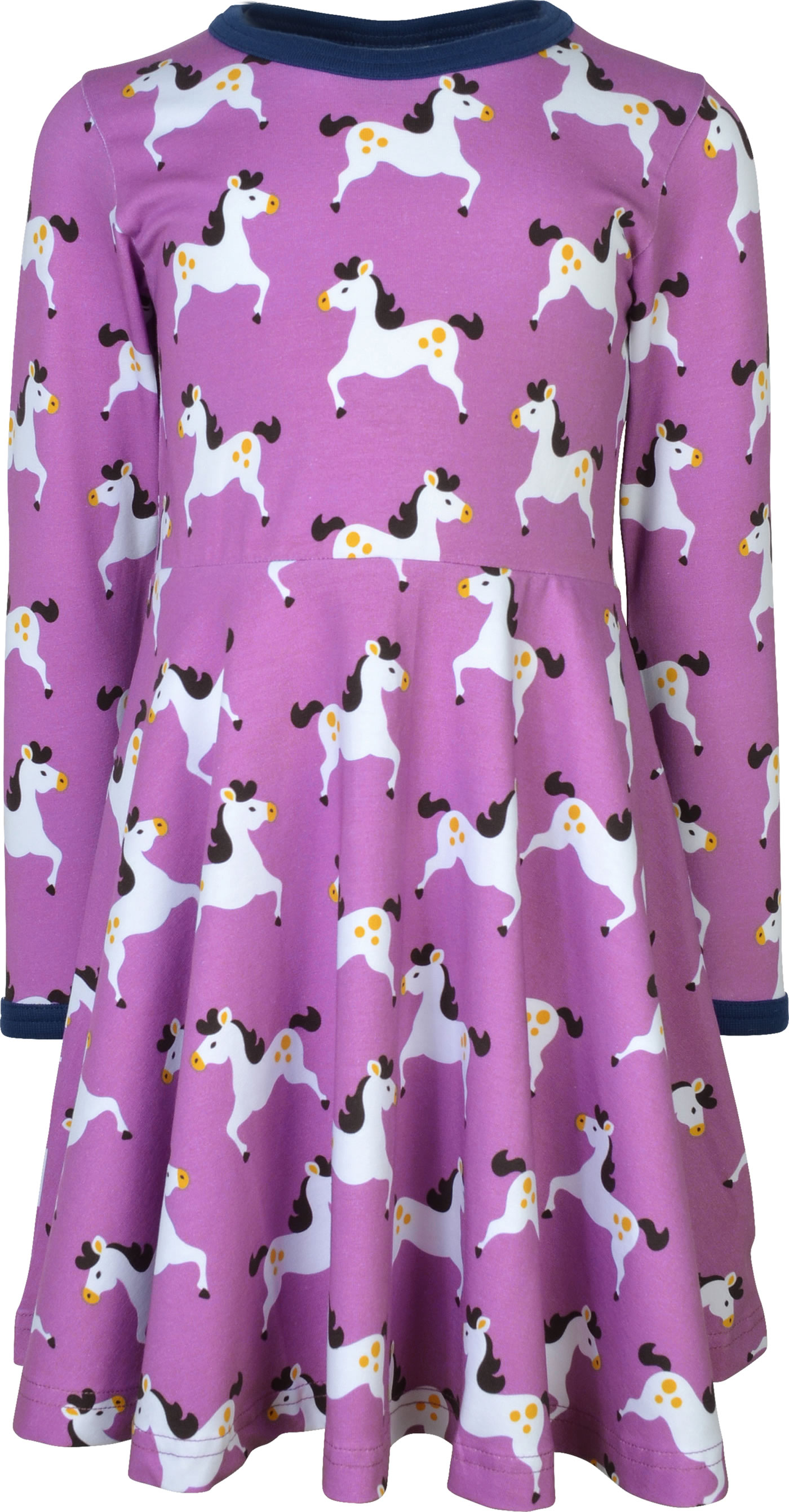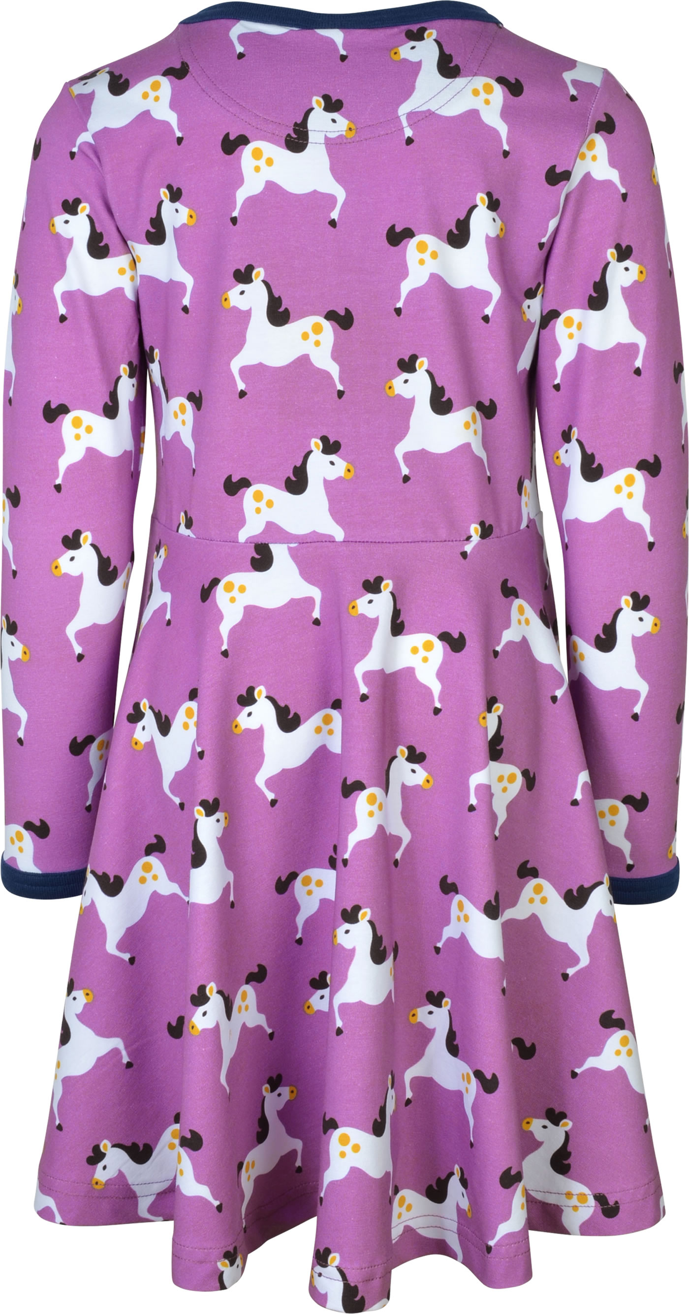Maxomorra Kleid m. weitem Rock Langarm HORSE lila GOTS