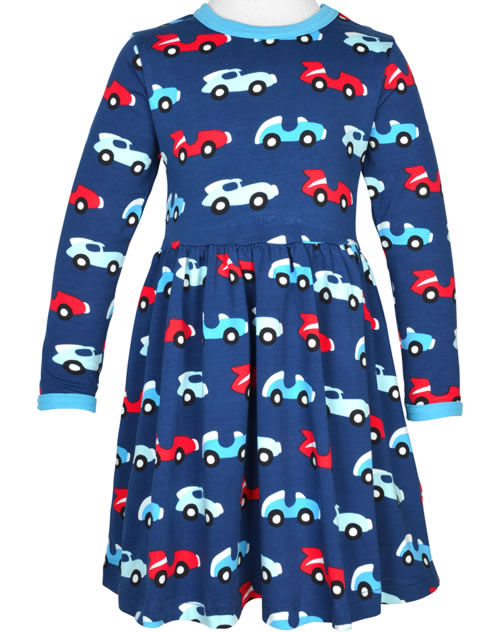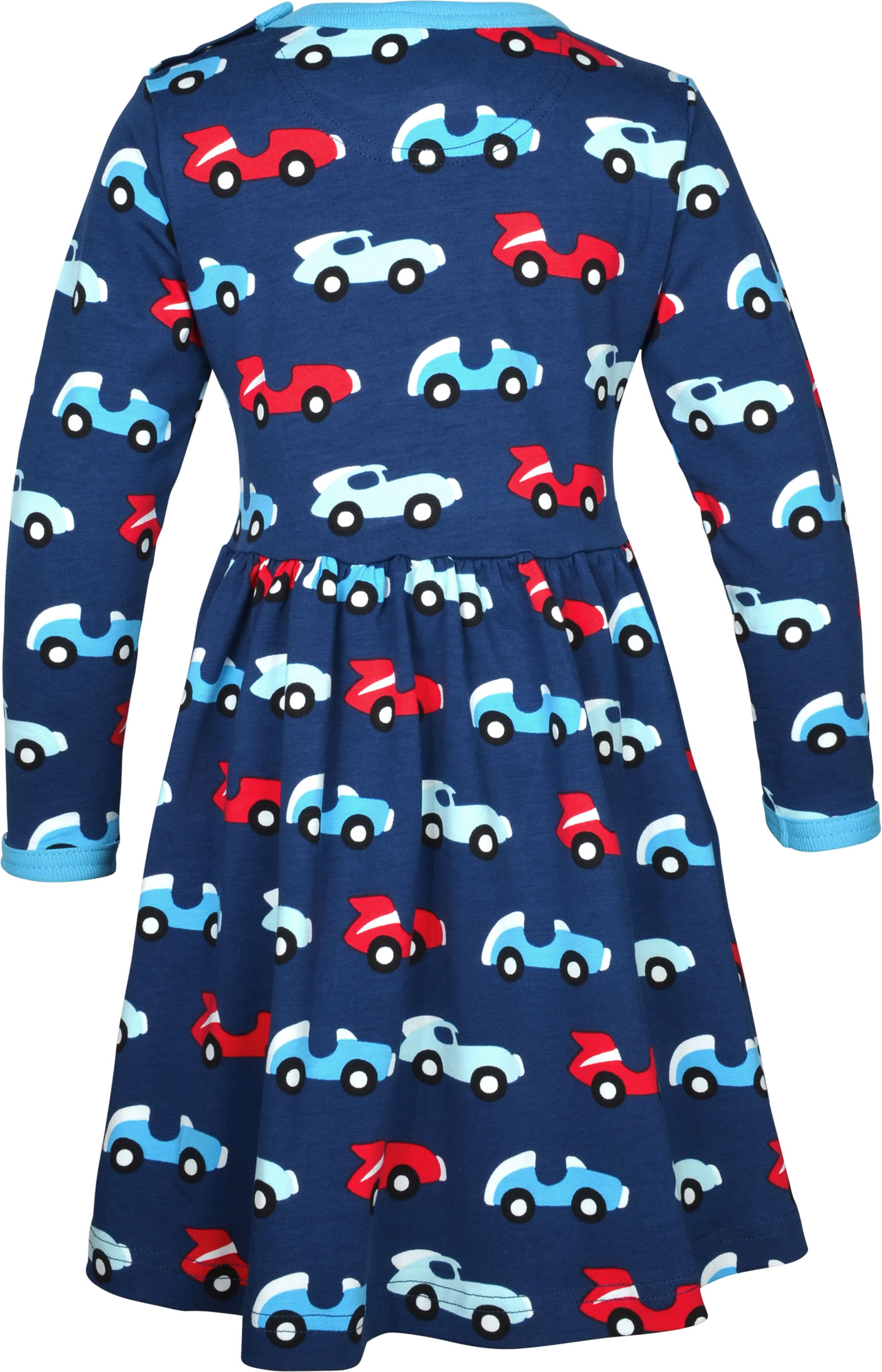 Schönes Langarm-Kleid mit weitem Rock und Rennauto-Muster von MAXOMORRA. Die bunten Farben und das peppige Design machen dieses Kleid zu einem tollen Blickfang. Für gute Laune sorgen in Kontrast-Farben abgesetzte Bündchen und Nähte. Das weiche Material sorgt für einen angenehmen Tragekomfort.