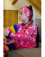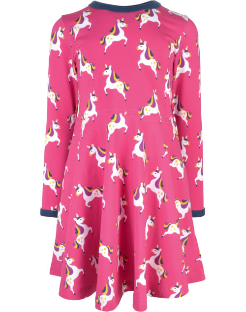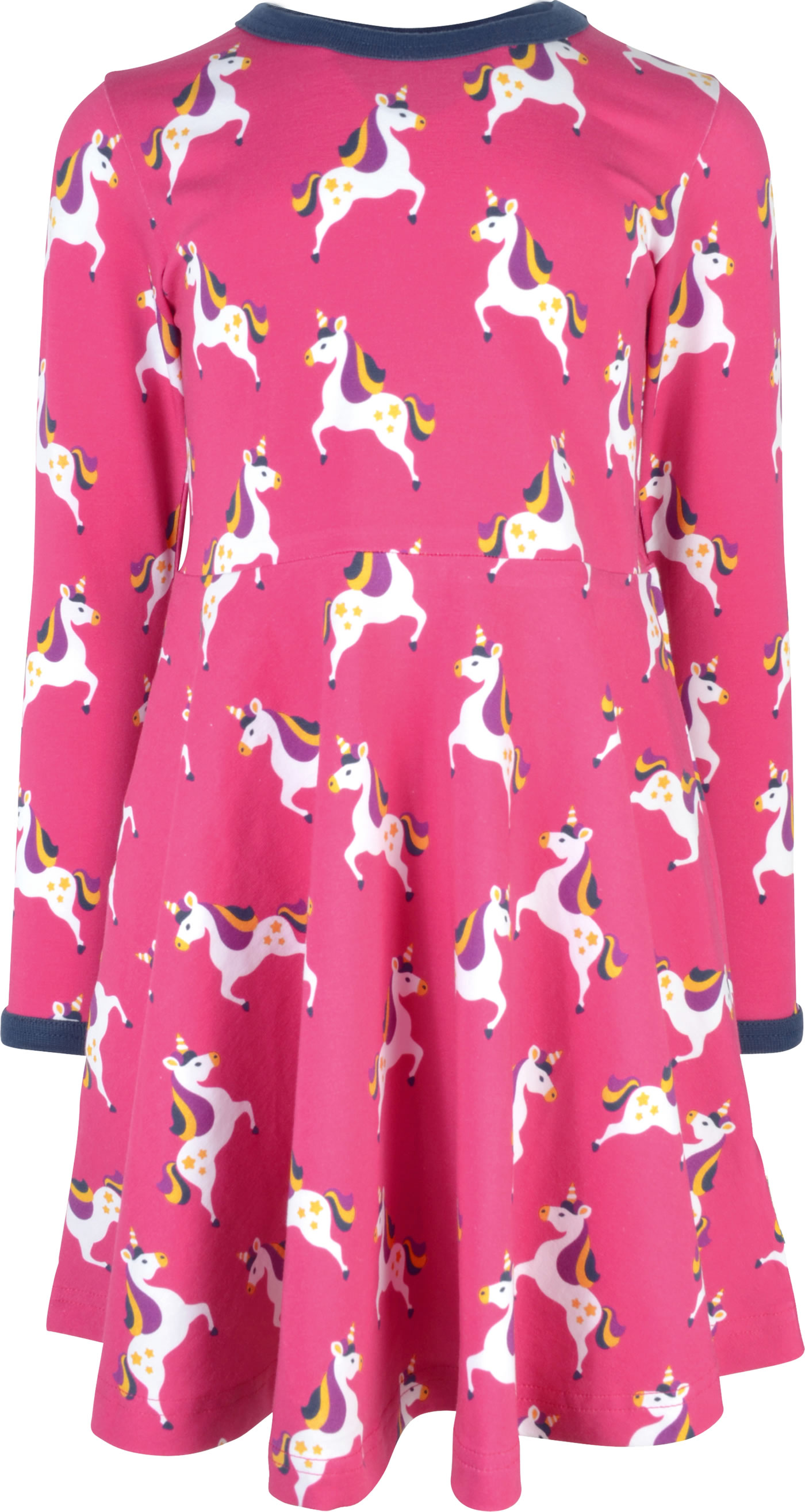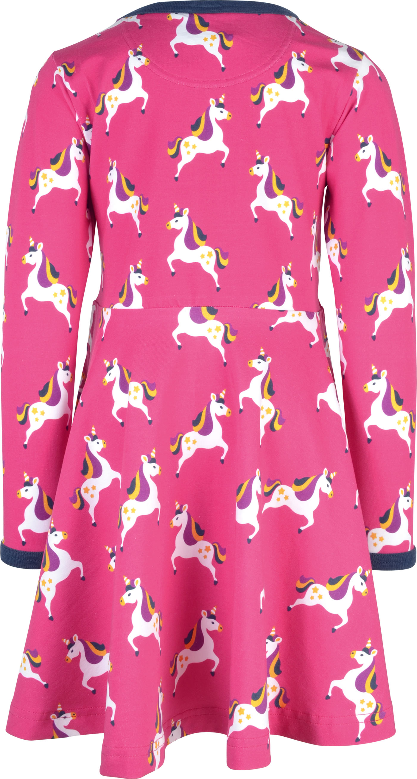 Maxomorra Kleid m. weitem Rock Langarm UNICORN pink GOTS
