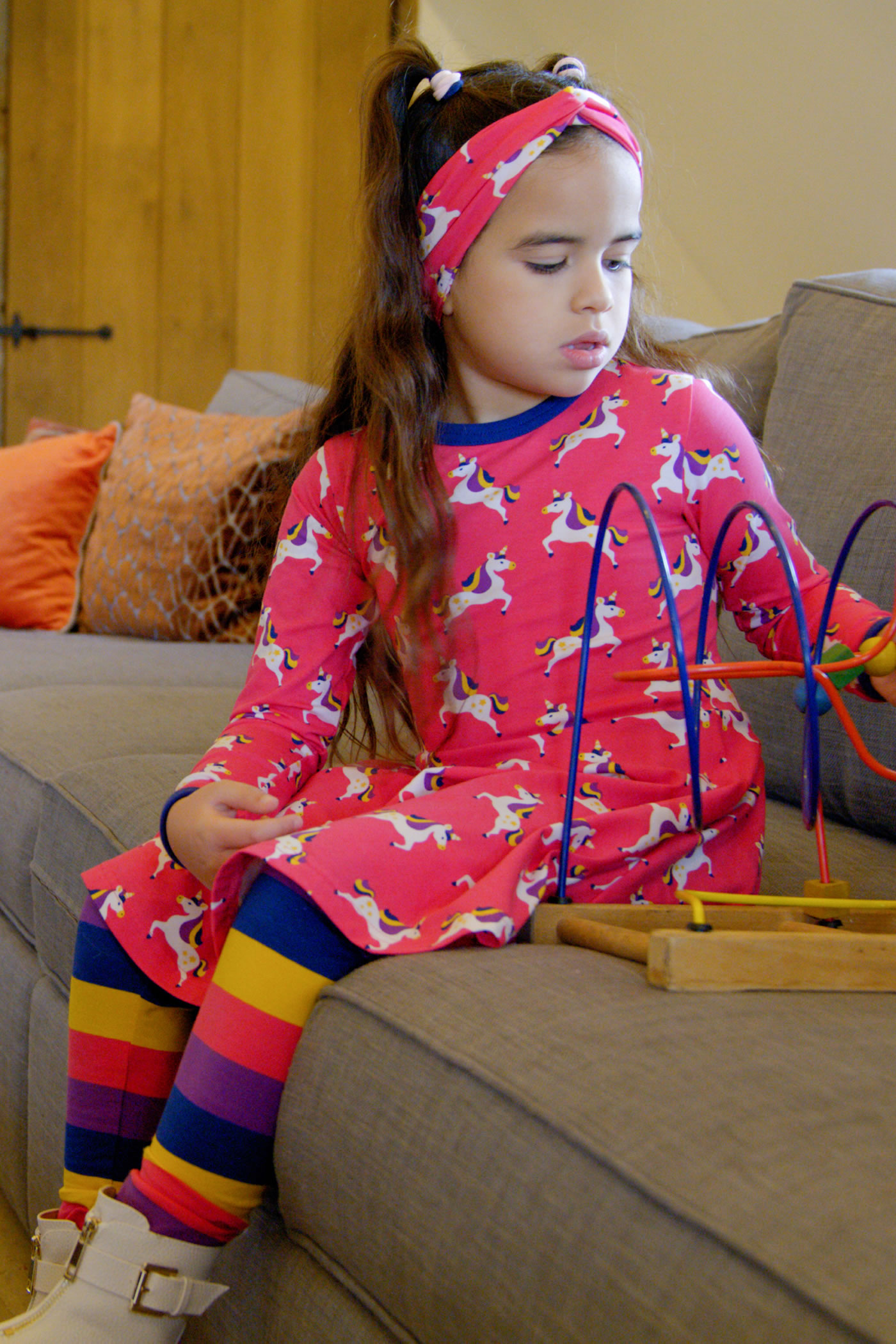 Eines der Lieblingskleider meiner Tochter. Einhörner kommen immer gut an :-). Gute Qualität. Die Farben sind schön.