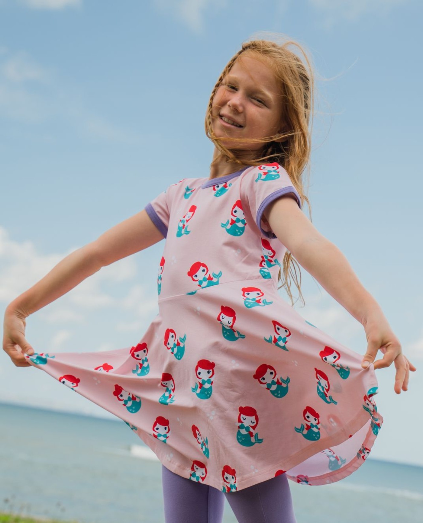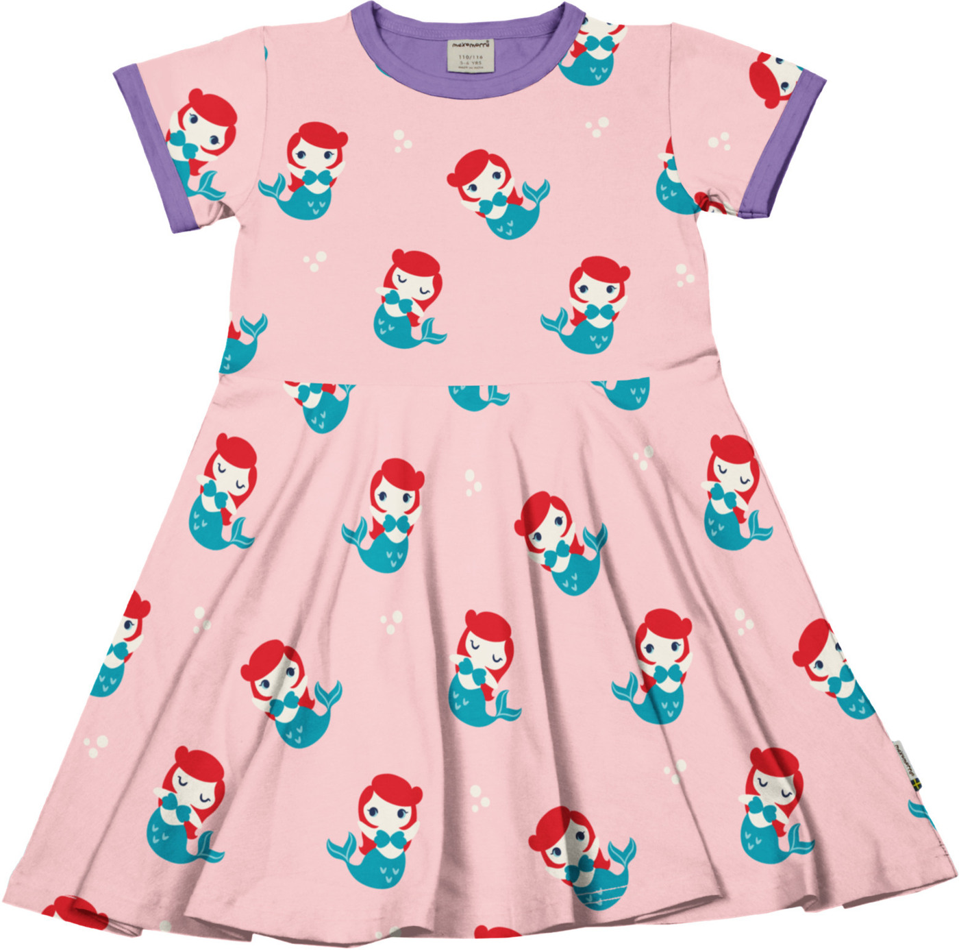 Maxomorra Kleid mit weitem Rock Kurzarm GOTS aus Bio-Baumwolle - Mermaid Rosa