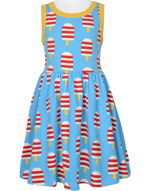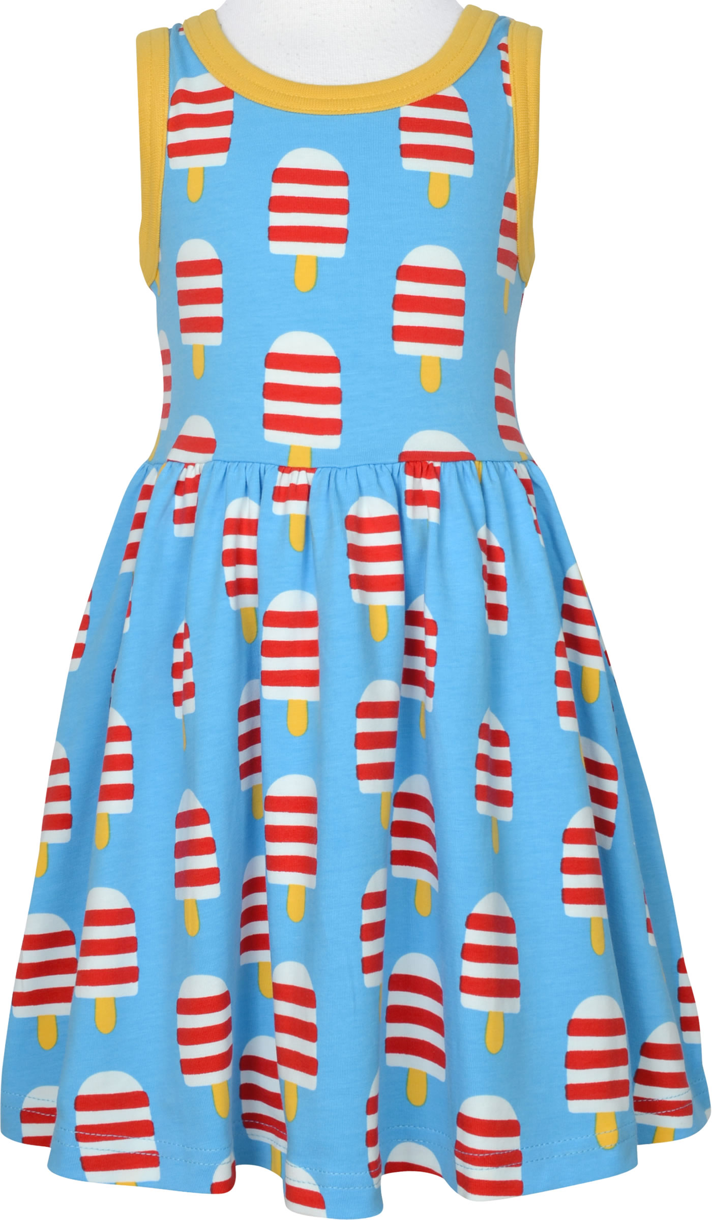 Schönes Träger-Kleid mit Eis-Motiv und weit schwingendem Rock von MAXOMORRA. Die fröhlichen Farben und das peppige Design machen dieses Kleid zu einem tollen Blickfang. Das weiche Material sorgt für einen angenehmen Tragekomfort.
