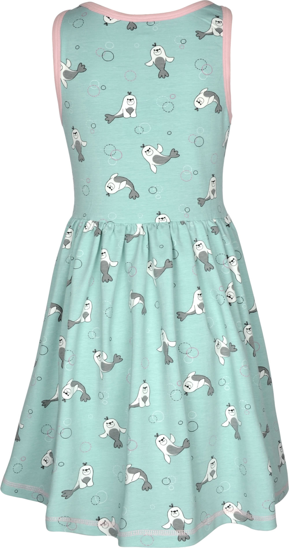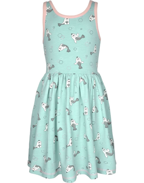 Schönes Träger-Kleid mit Seehund-Motiven und weit schwingendem Rock von MAXOMORRA. Die fröhlichen Farben und das peppige Design machen dieses Kleid zu einem tollen Blickfang. Das weiche Material sorgt für einen angenehmen Tragekomfort. Das Kleid ist ein toller Begleiter für die warme Jahreszeit.