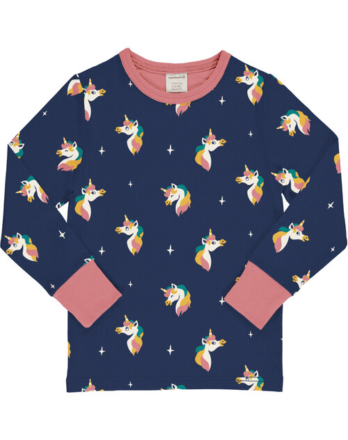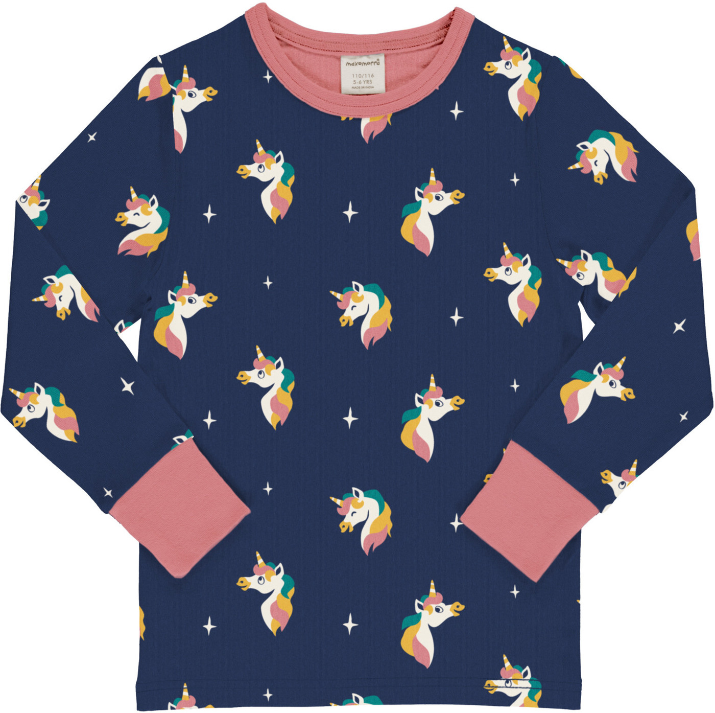 Maxomorra Langarmshirt aus Baumwolle mit Einhörnern UNICORN - Blau
