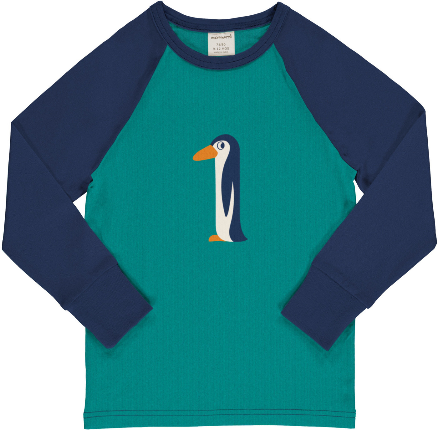 Maxomorra Langarmshirt aus Baumwolle mit Zahl 1 PINGUIN - Türkis/Dunkelblau