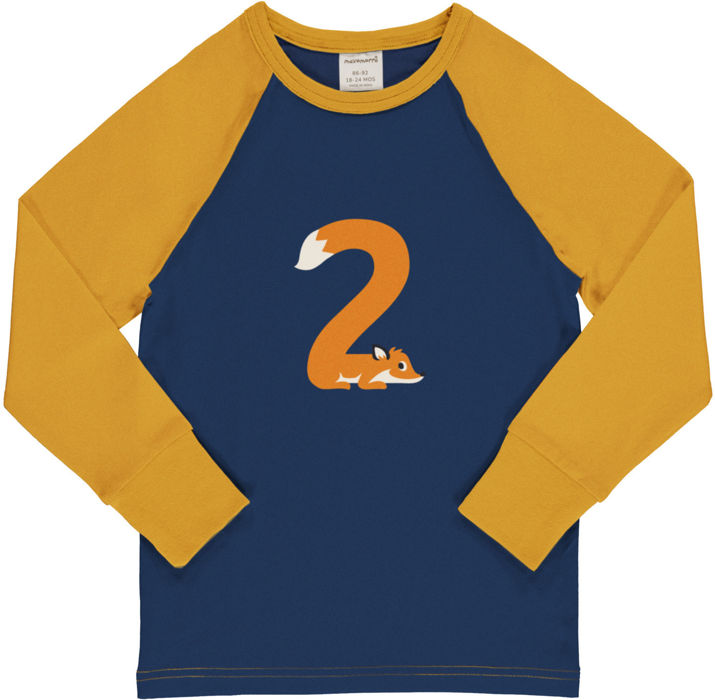 Maxomorra Langarmshirt aus Baumwolle mit Zahl 2 FUCHS - Dunkelblau/Senf