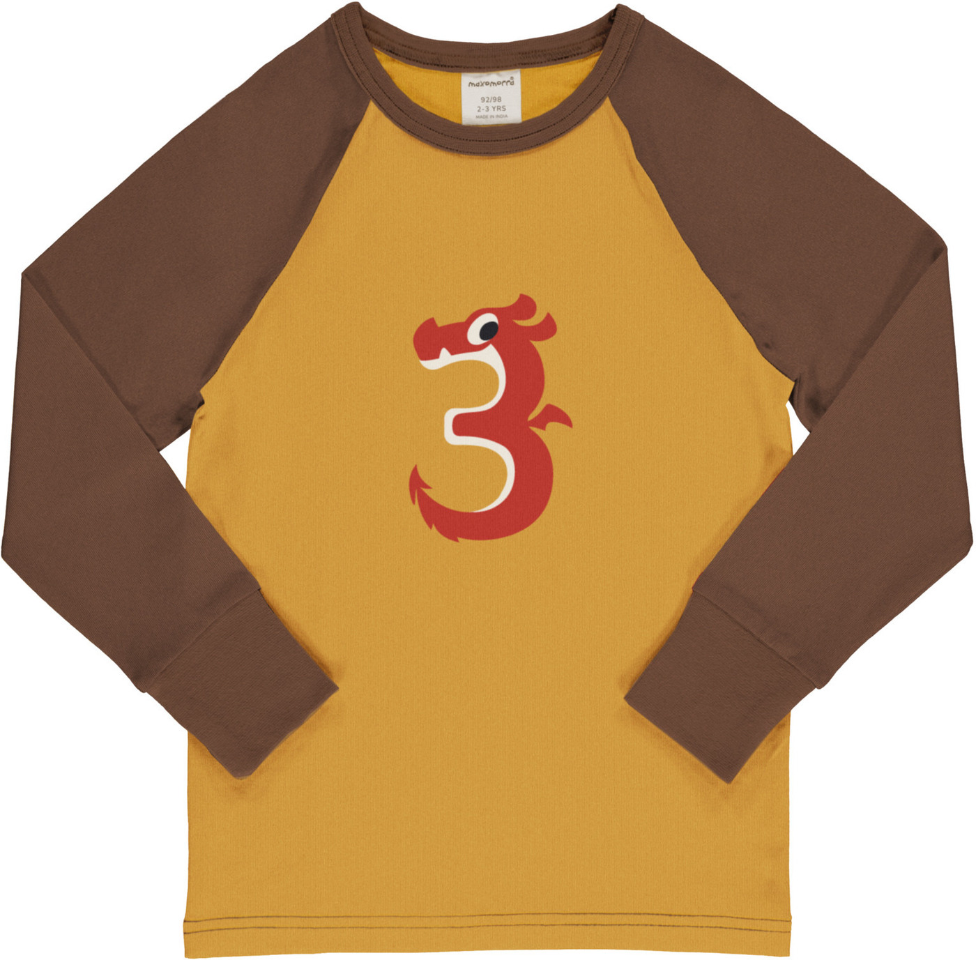 Maxomorra Langarmshirt aus Baumwolle mit Zahl 3 DRACHE - Senf/Braun