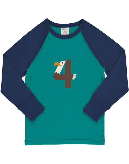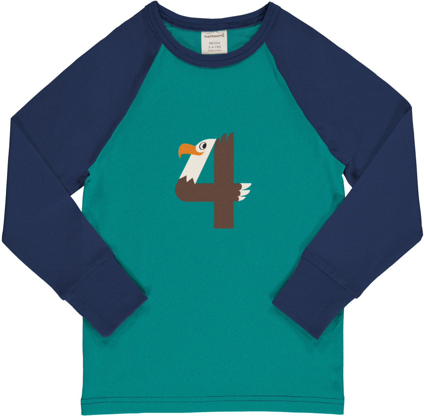 Maxomorra Langarmshirt aus Baumwolle mit Zahl 4 ADLER - Türkis/Dunkelblau