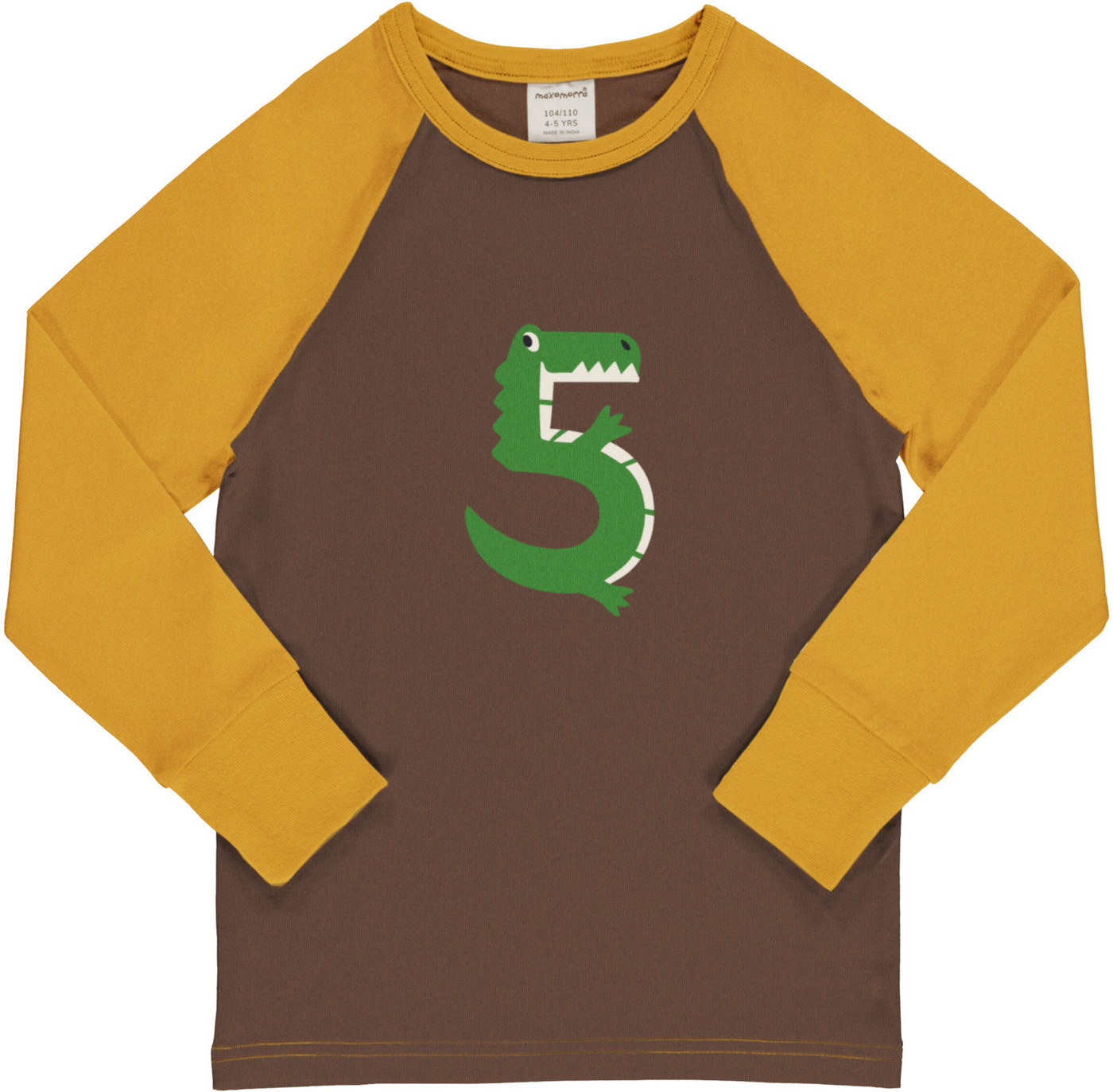 Maxomorra Langarmshirt aus Baumwolle mit Zahl 5 KROKODIL - Braun/Senf