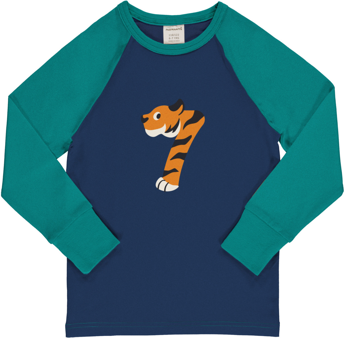 Maxomorra Langarmshirt aus Baumwolle mit Zahl 7 TIGER - Dunkelblau/Türkis