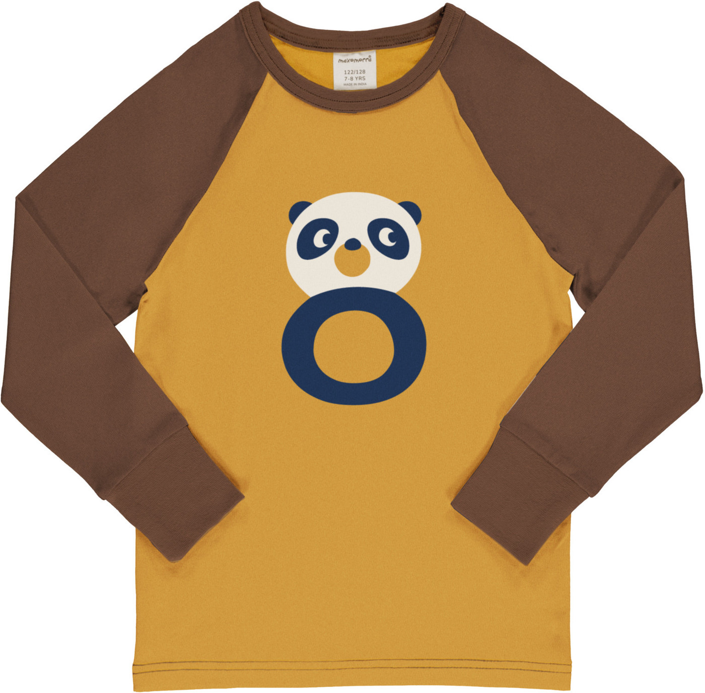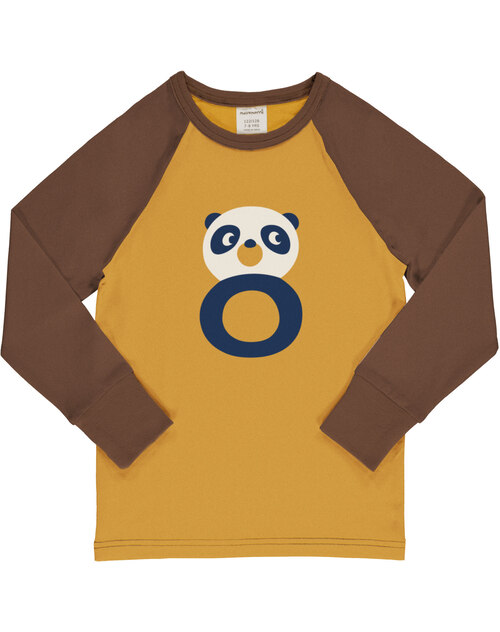 Maxomorra Langarmshirt aus Baumwolle mit Zahl 8 PANDA - Senf/Braun
