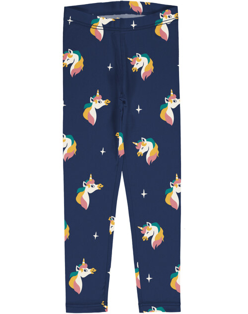 Diese schöne Leggings von Maxomorra ist im Grundton Blau gehalten und entzückt mit vielen abgebildeten Einhörnern und Sternen. 🦄✨