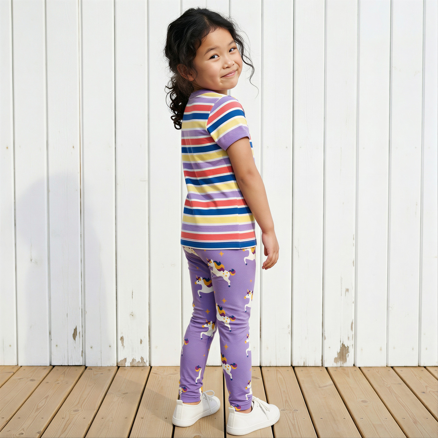 Diese schöne Leggings von Maxomorra ist im Grundton Lila gehalten und entzückt mit vielen abgebildeten Einhörnern rundum. 🦄